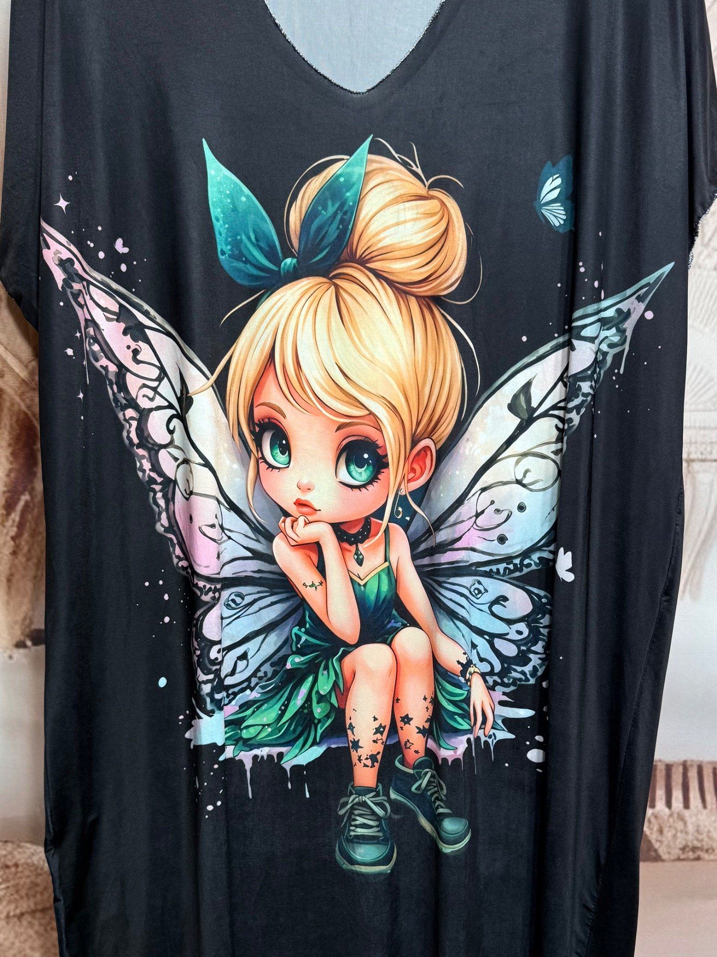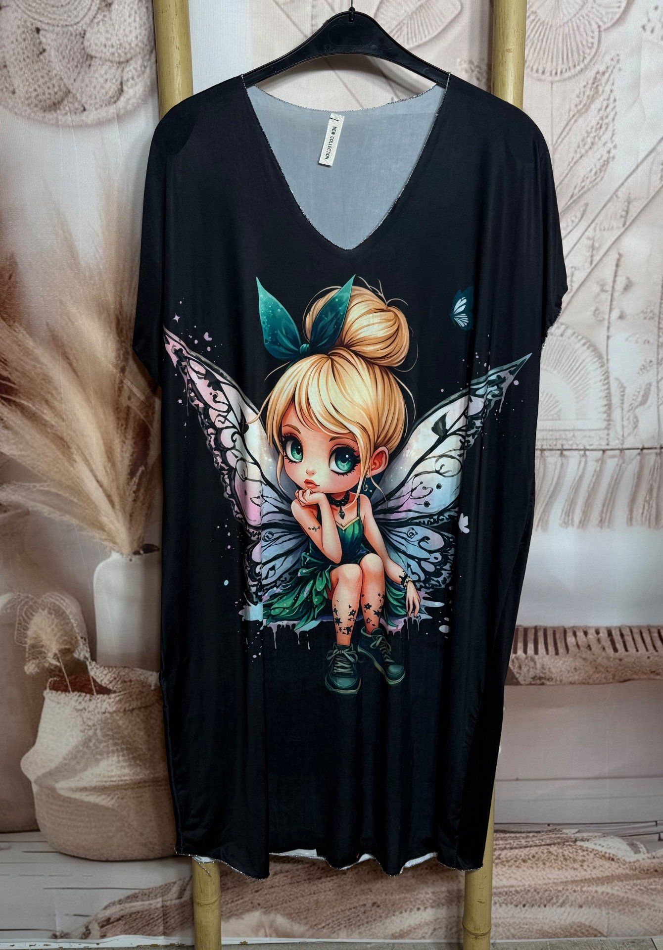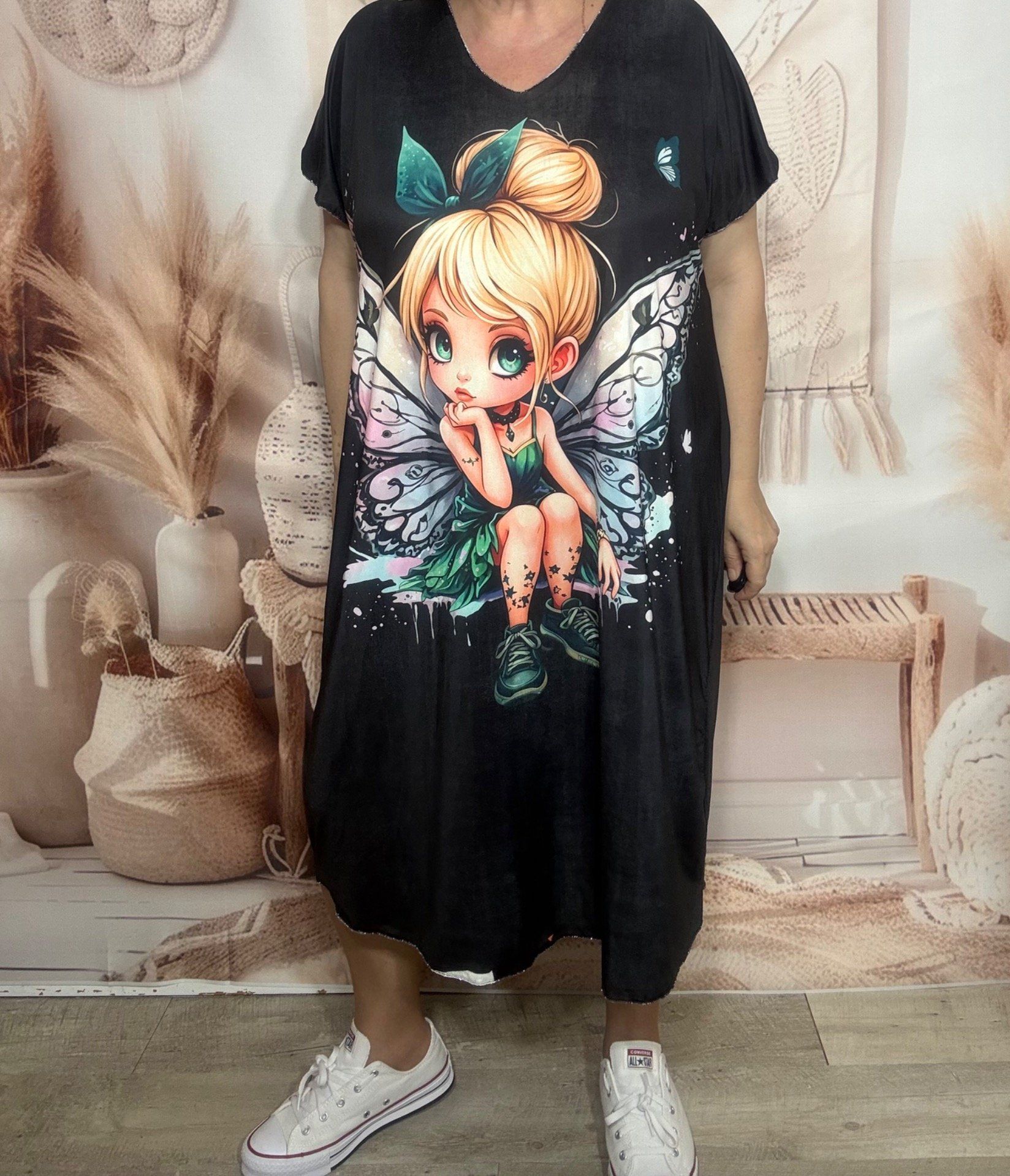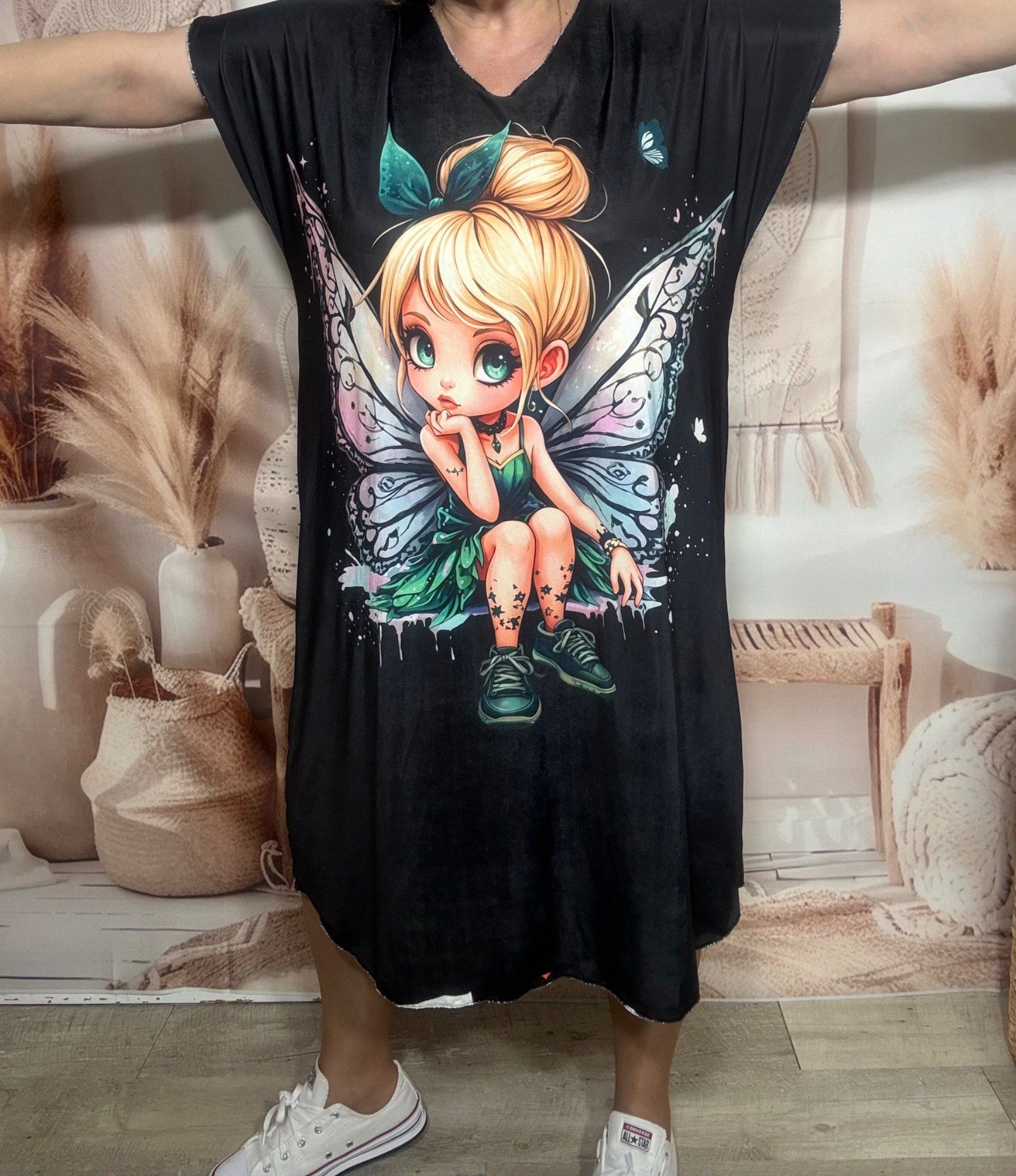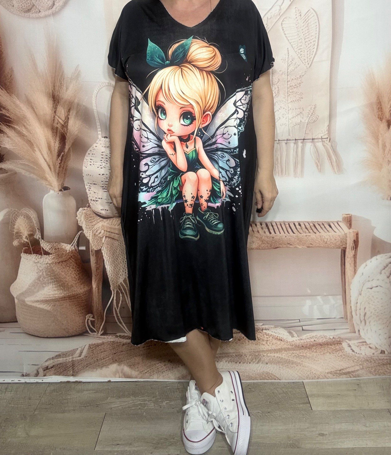 Robe mi-longue ample lycra noire La Fée Clochette du 42 au 52/54