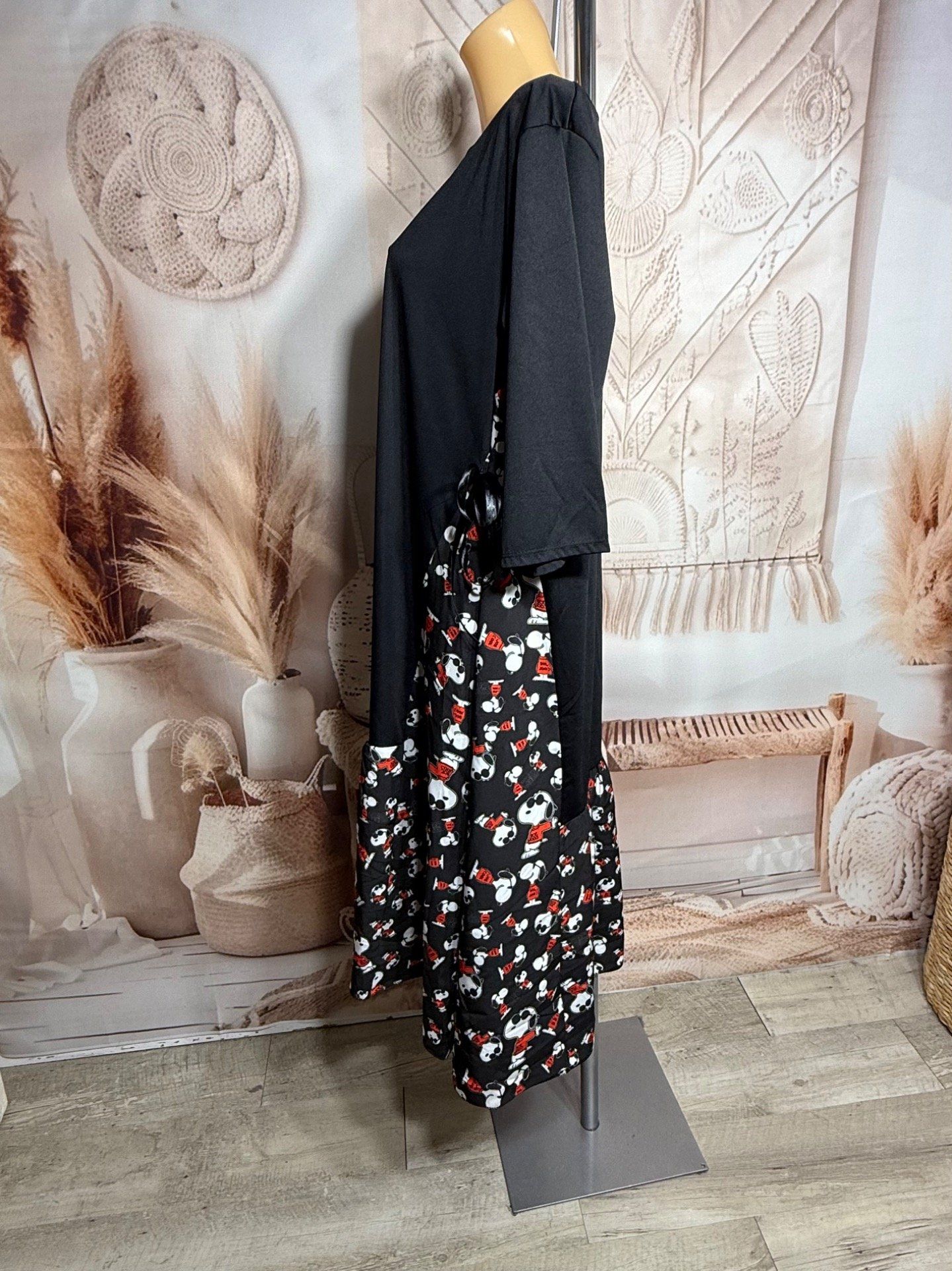 Robe mi-longue noire bi-matière Snoopy Peanuts & Friends taille ajustable du 38 au 52