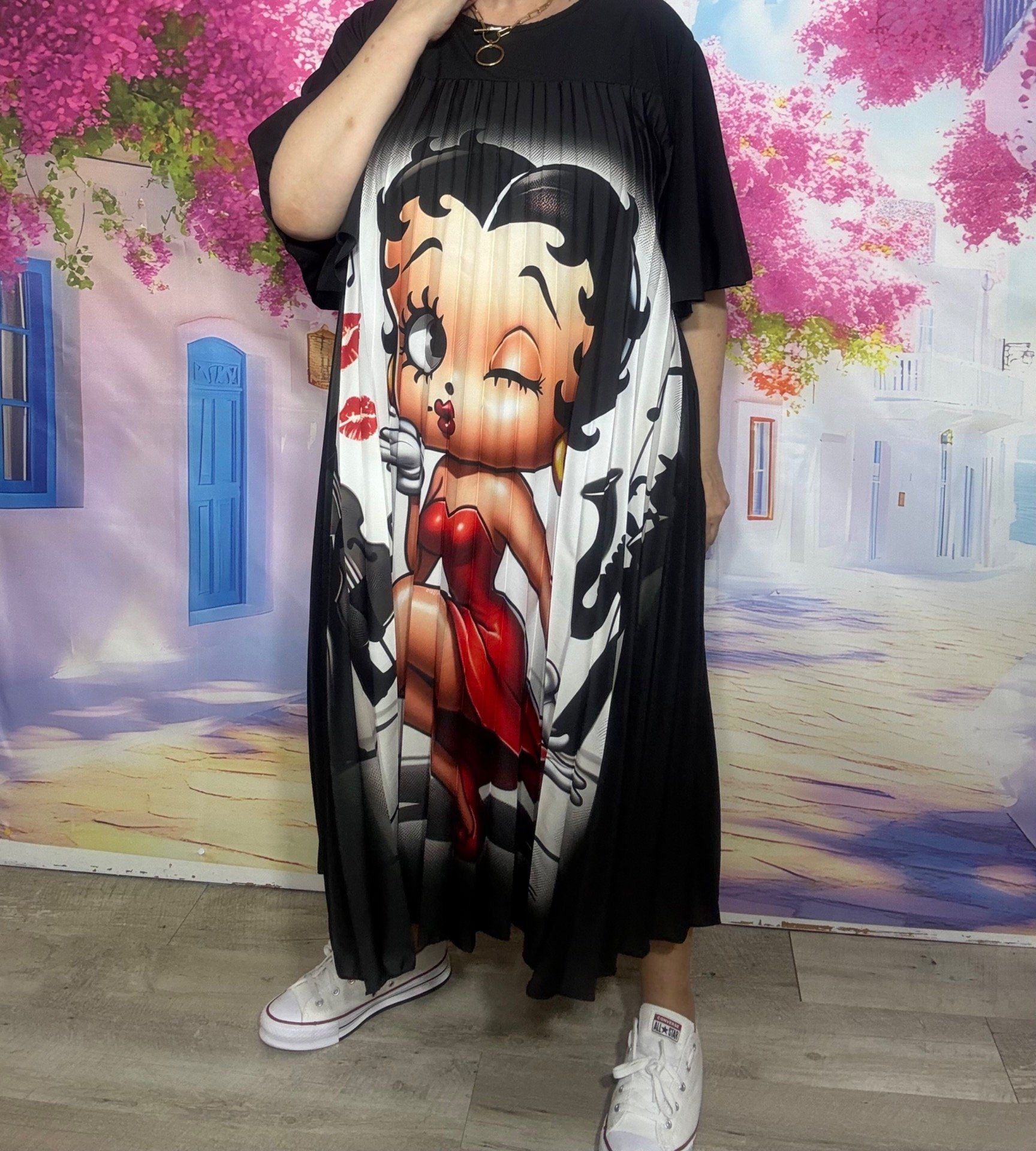 Robe mi-longue plissée noire Betty Boop Music Pin Up Rétro chic du 40 au 52