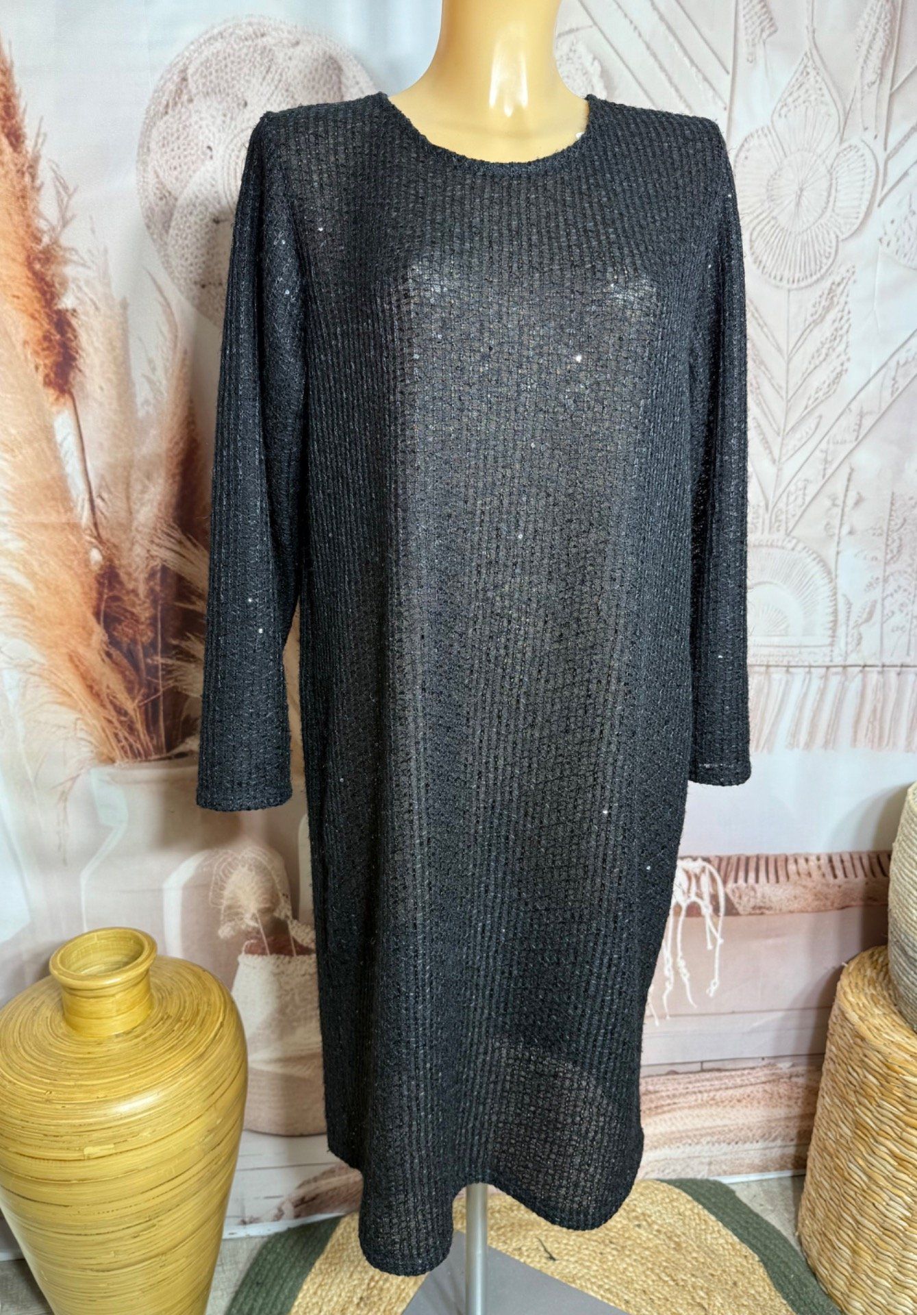 Robe noire ou maxi-Pull paillettes et sequins noirs brillants du 36 au 44