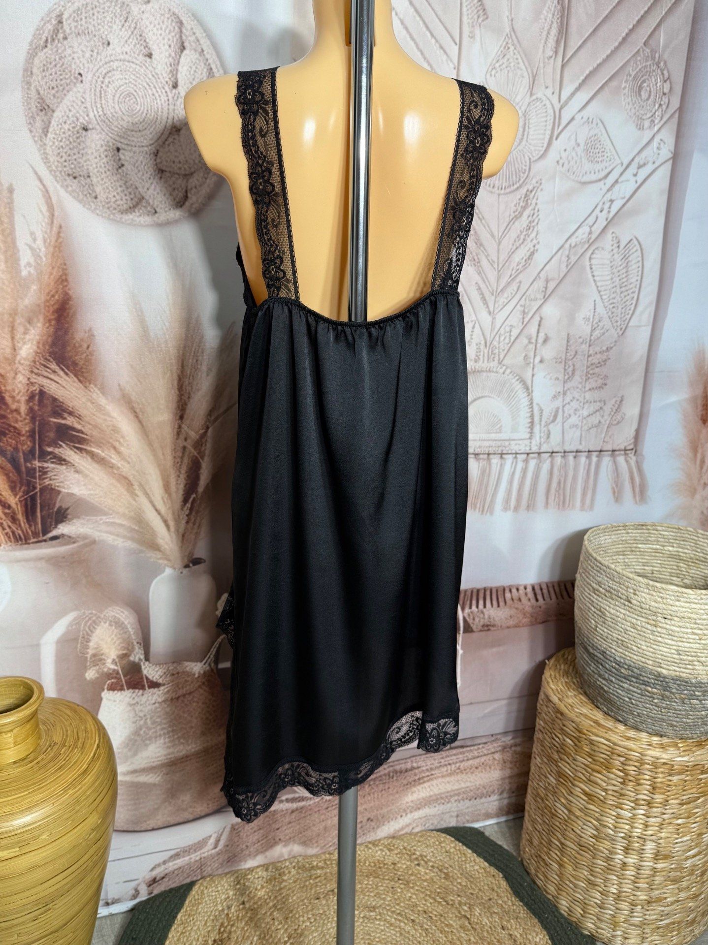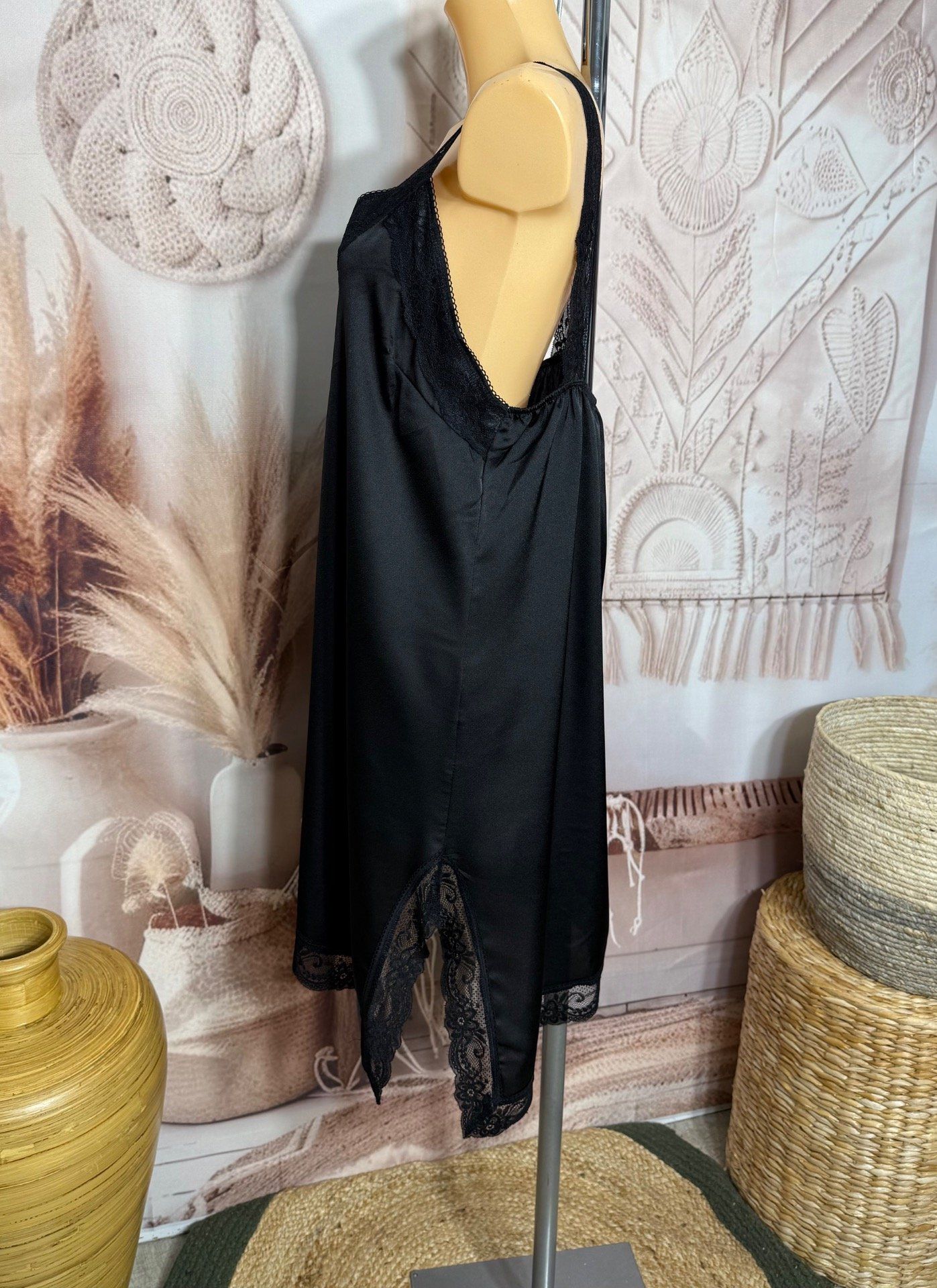 Robe nuisette asymétrique satinée noire et dentelle du 36 au 46