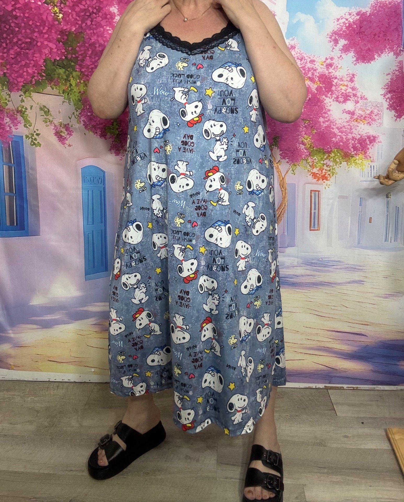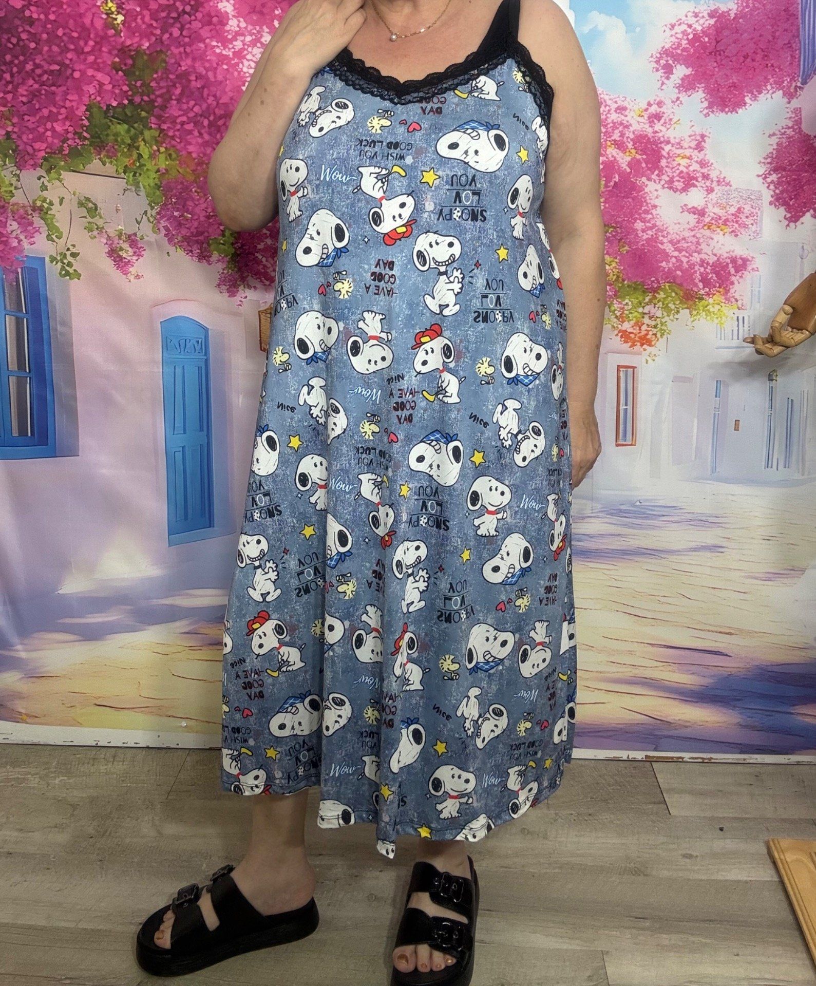 Robe nuisette lycra effet jeans délavé et dentelle Snoopy bretelles réglables du 38 au 48/50