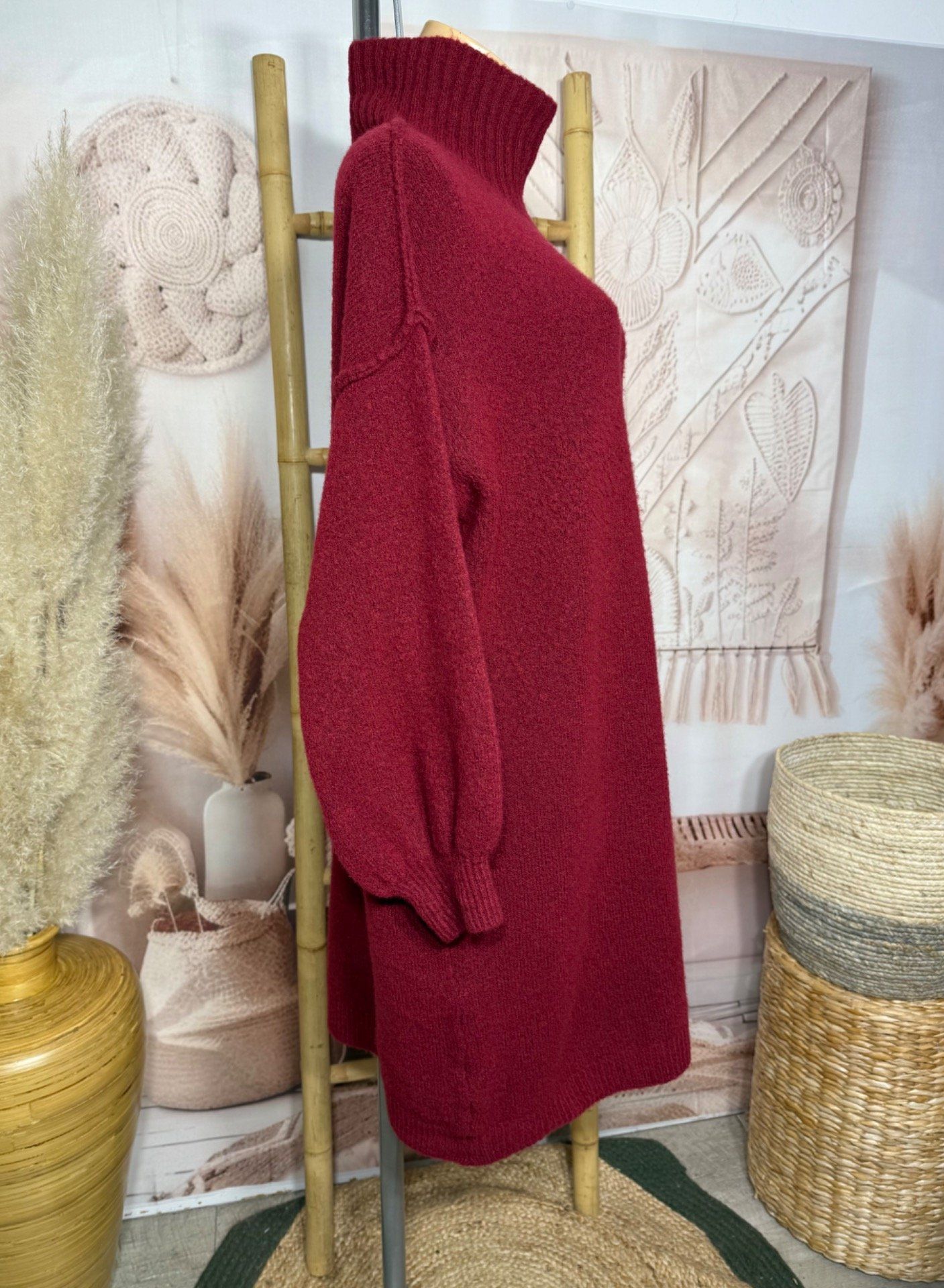 Robe-pull Bordeaux ou maxi-pull col montant cheminée douceur ++++