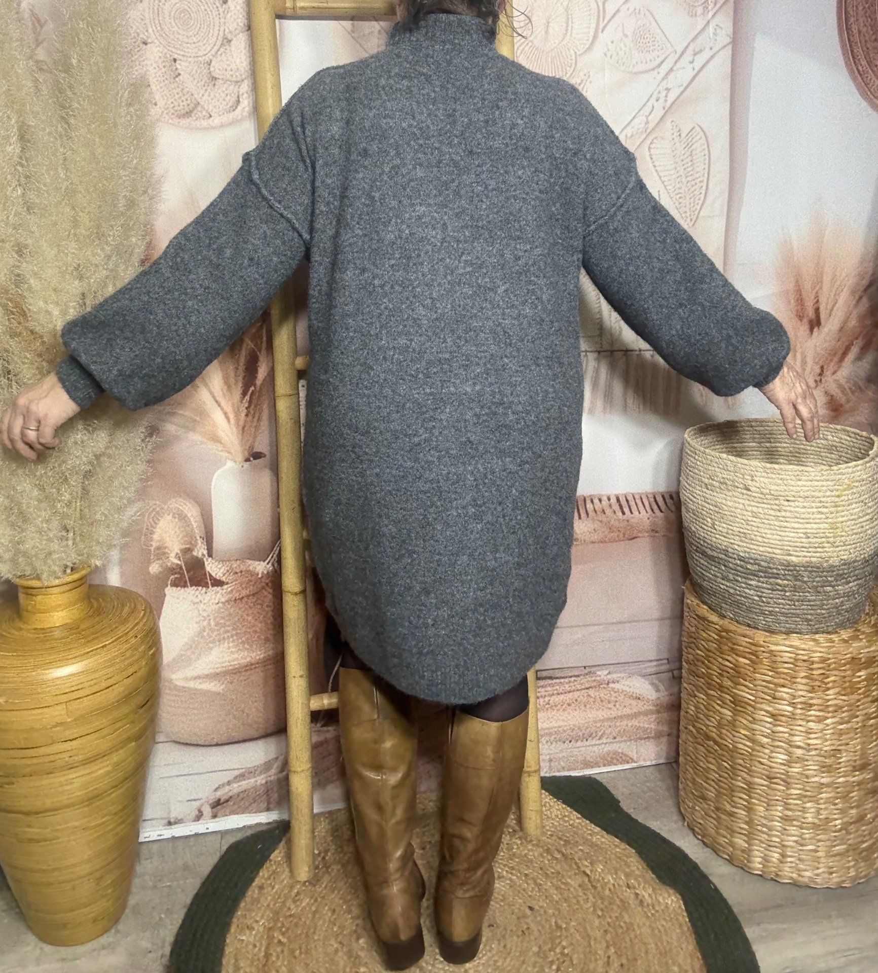 Robe-pull gris souris ou maxi-pull col montant cheminée douceur ++++