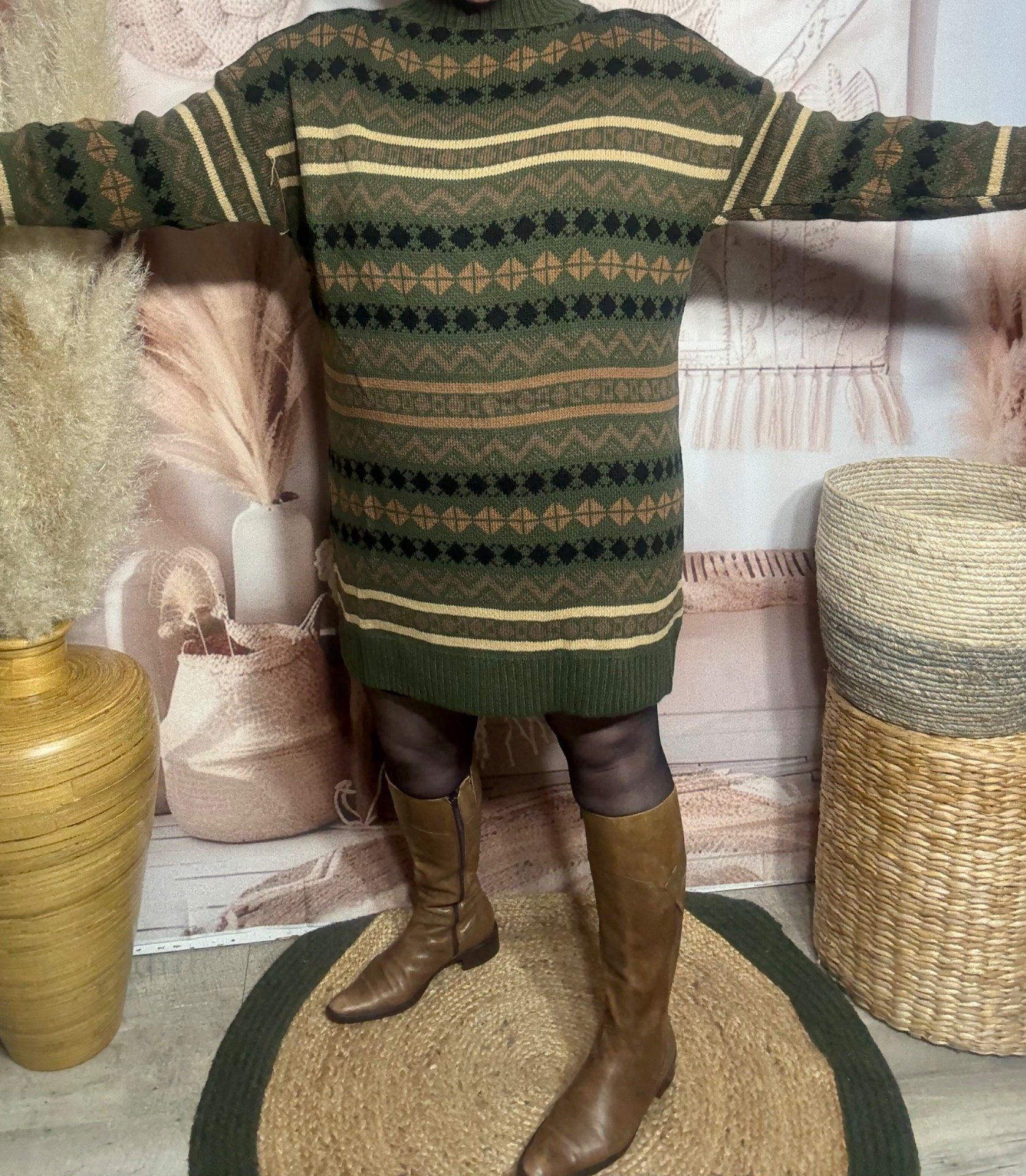 Robe-pull SANS LAINE Jacquard montagnard Kaki camel choco noir beige