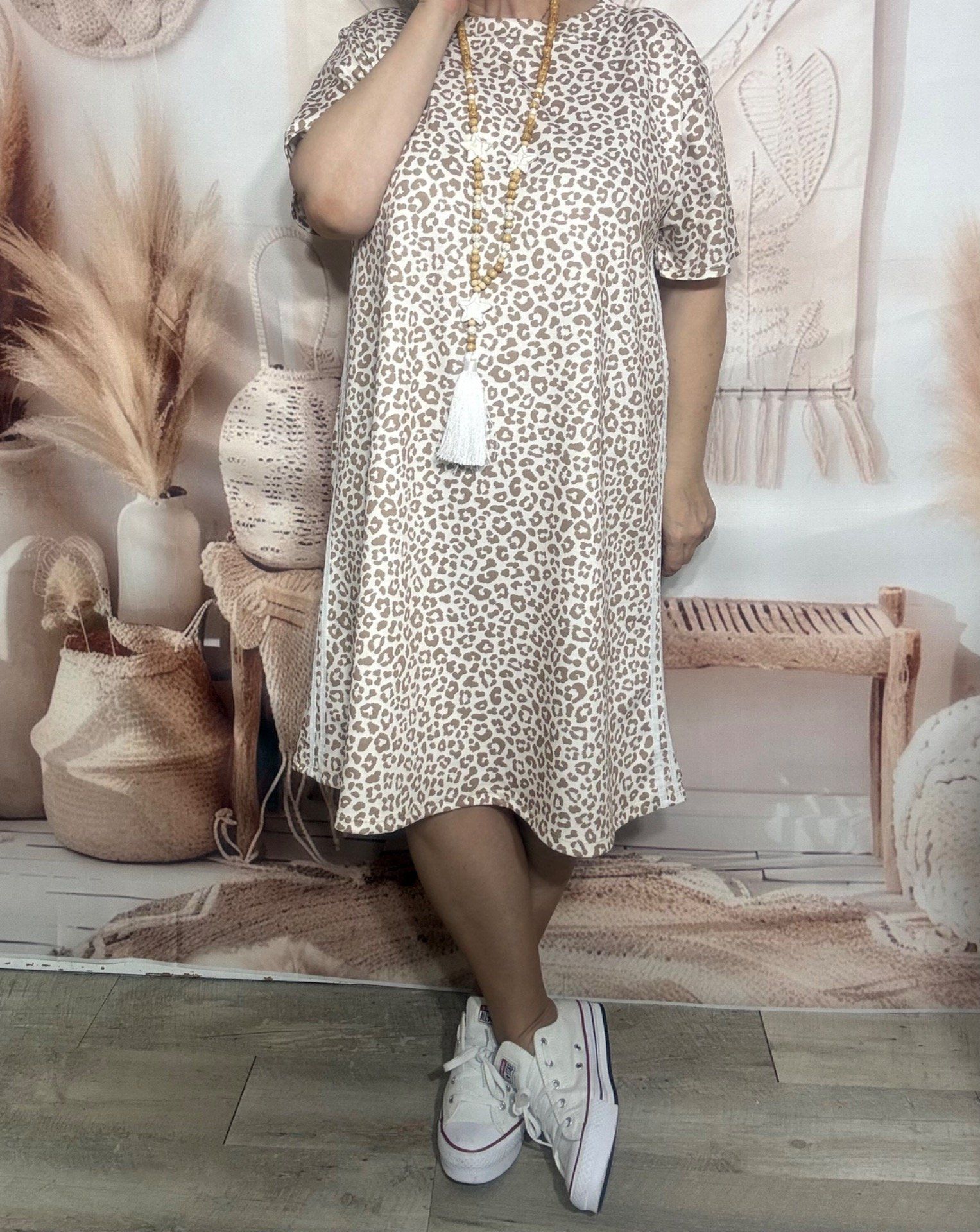 Robe-sweat ample Léopard Chocolat au lait & crème bandes côtés du 40 au 52