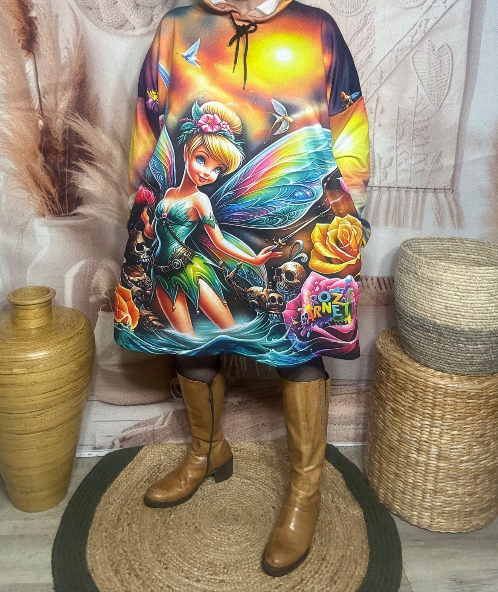 Robe-sweat trapèze à capuche multicolore Fée Clochette Tattoo du 40 au 50/52