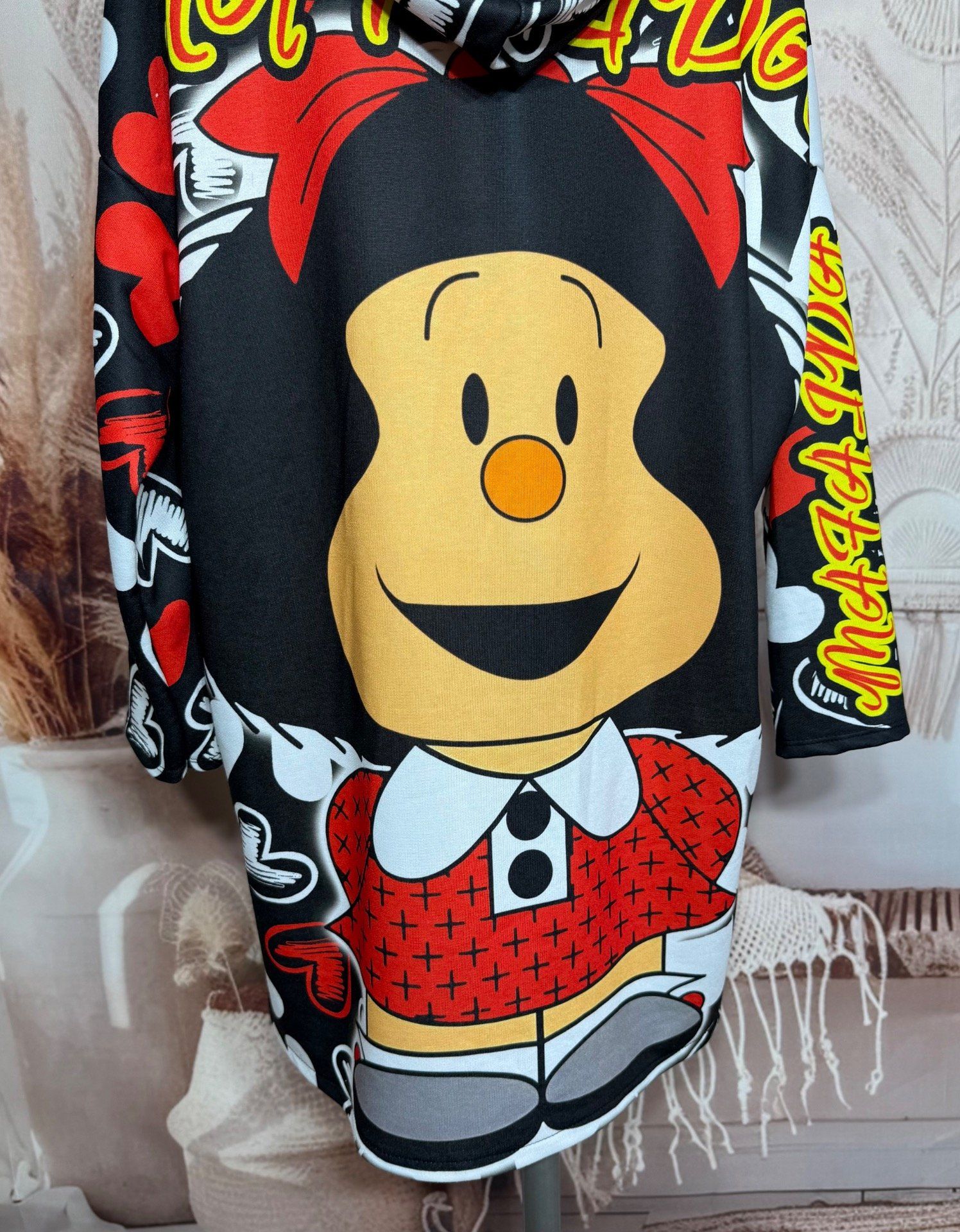 Robe-sweat trapèze à capuche multicolore Mafalda Love Hearts du 40 au 50/52