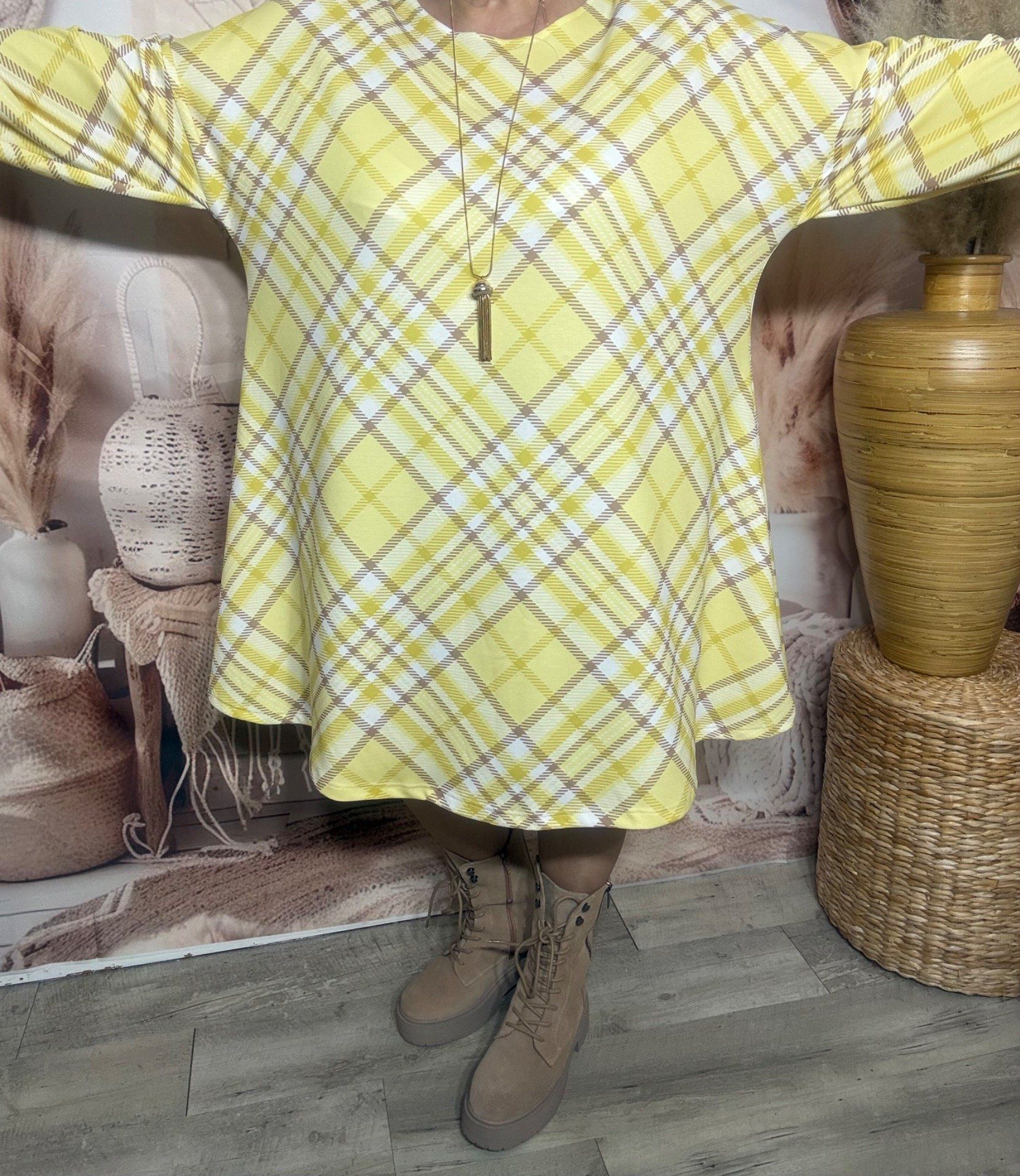 Robe trapèze ample Jacquard Esprit Rétro Sixties jaune douceur +++ du 42 au 54/56