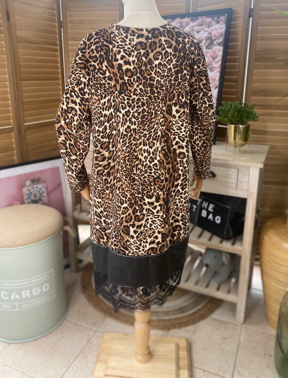 Robe Trapèze Léopard camel simili-cuir et dentelle du 36 au 46