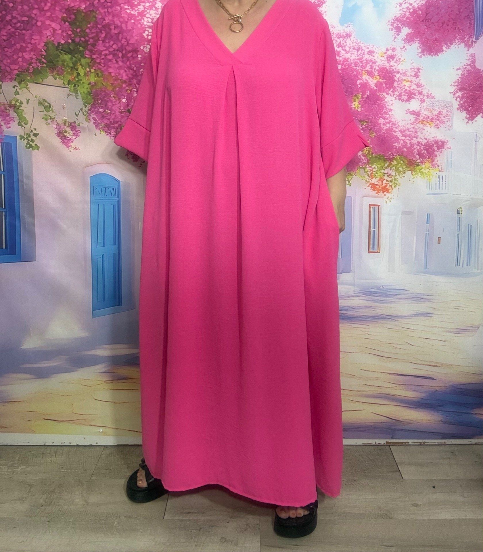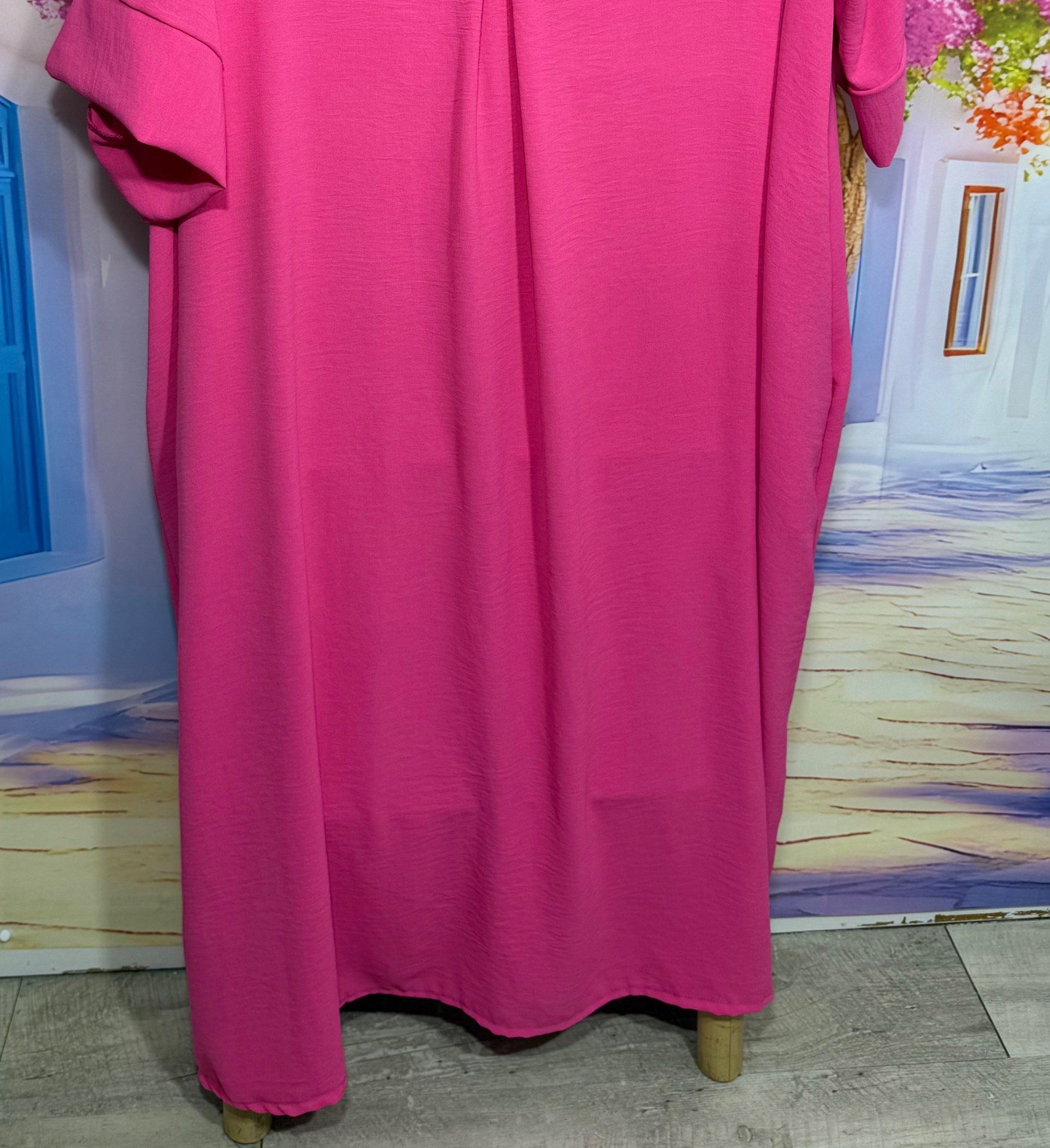 Robe trapèze longue Fuschia manches courtes douceur ++++
