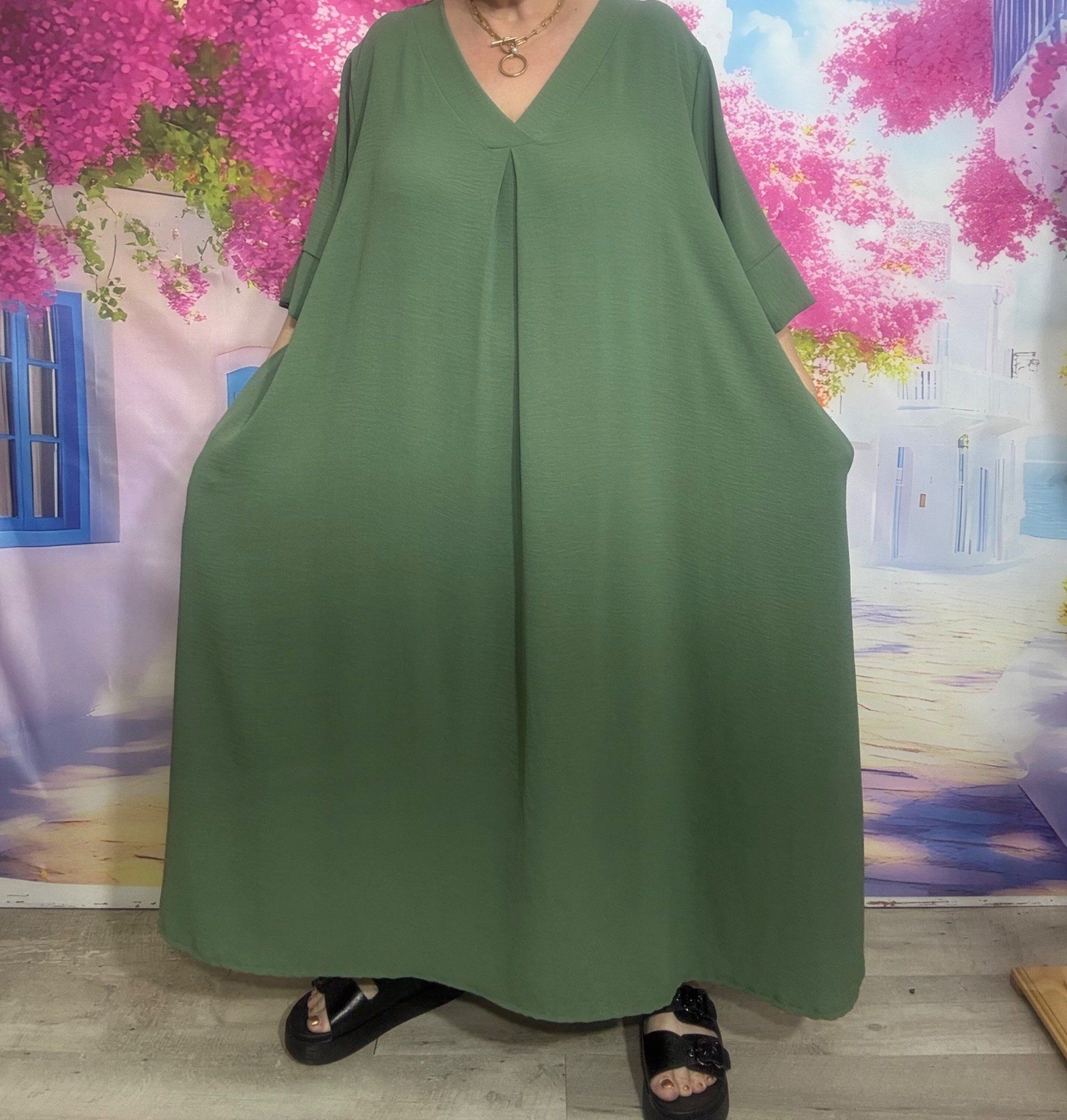 Robe trapèze longue Kaki manches courtes douceur ++++ du 42 au 54/56