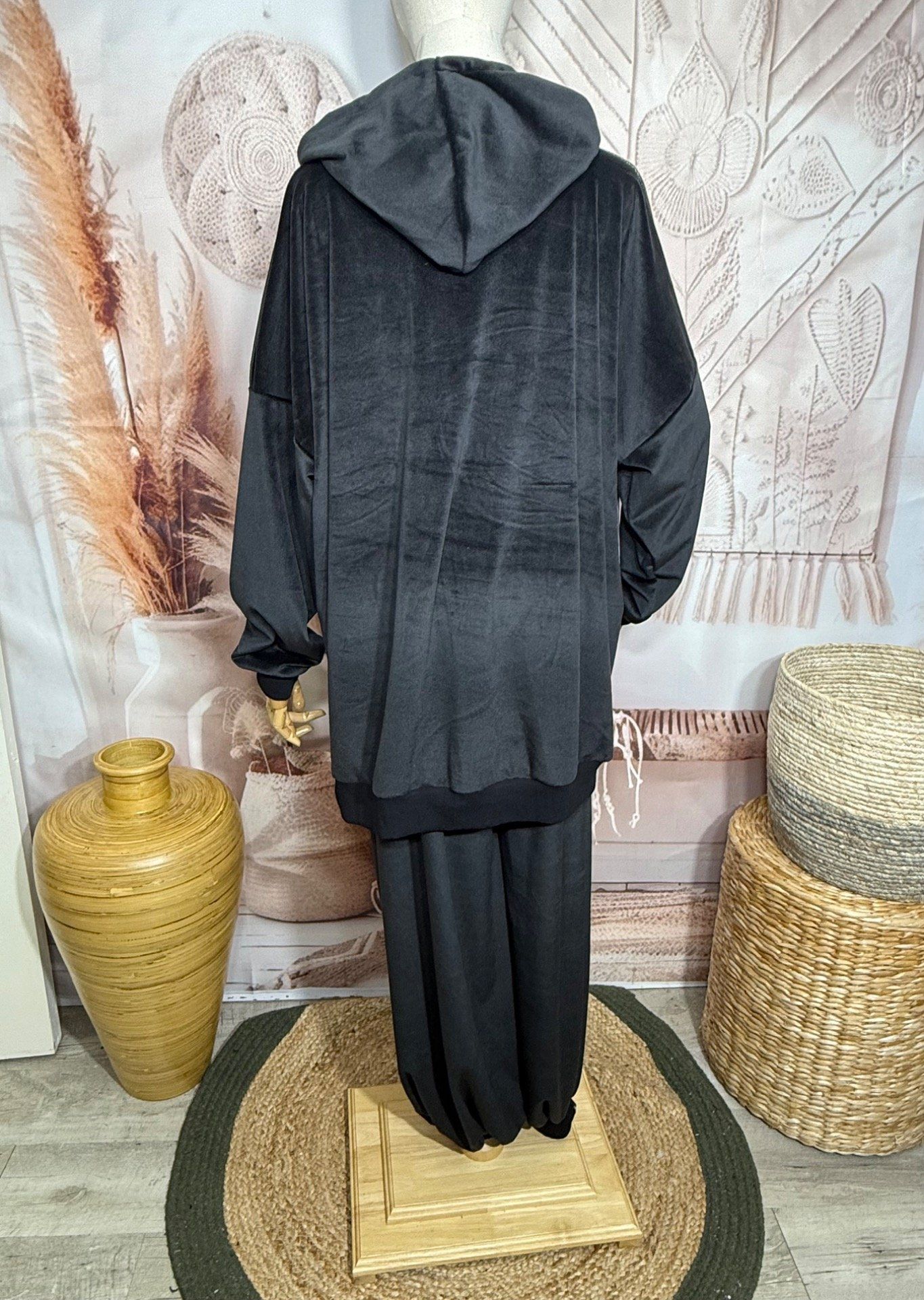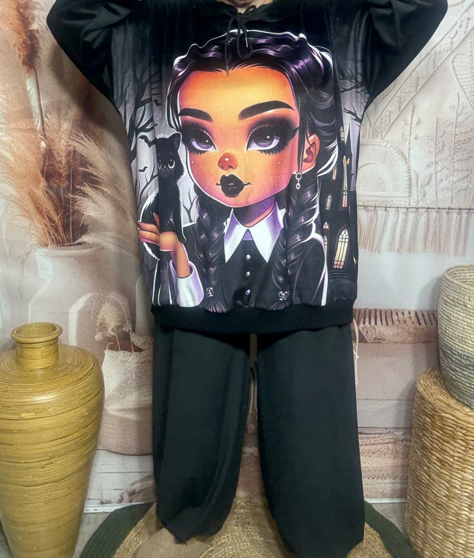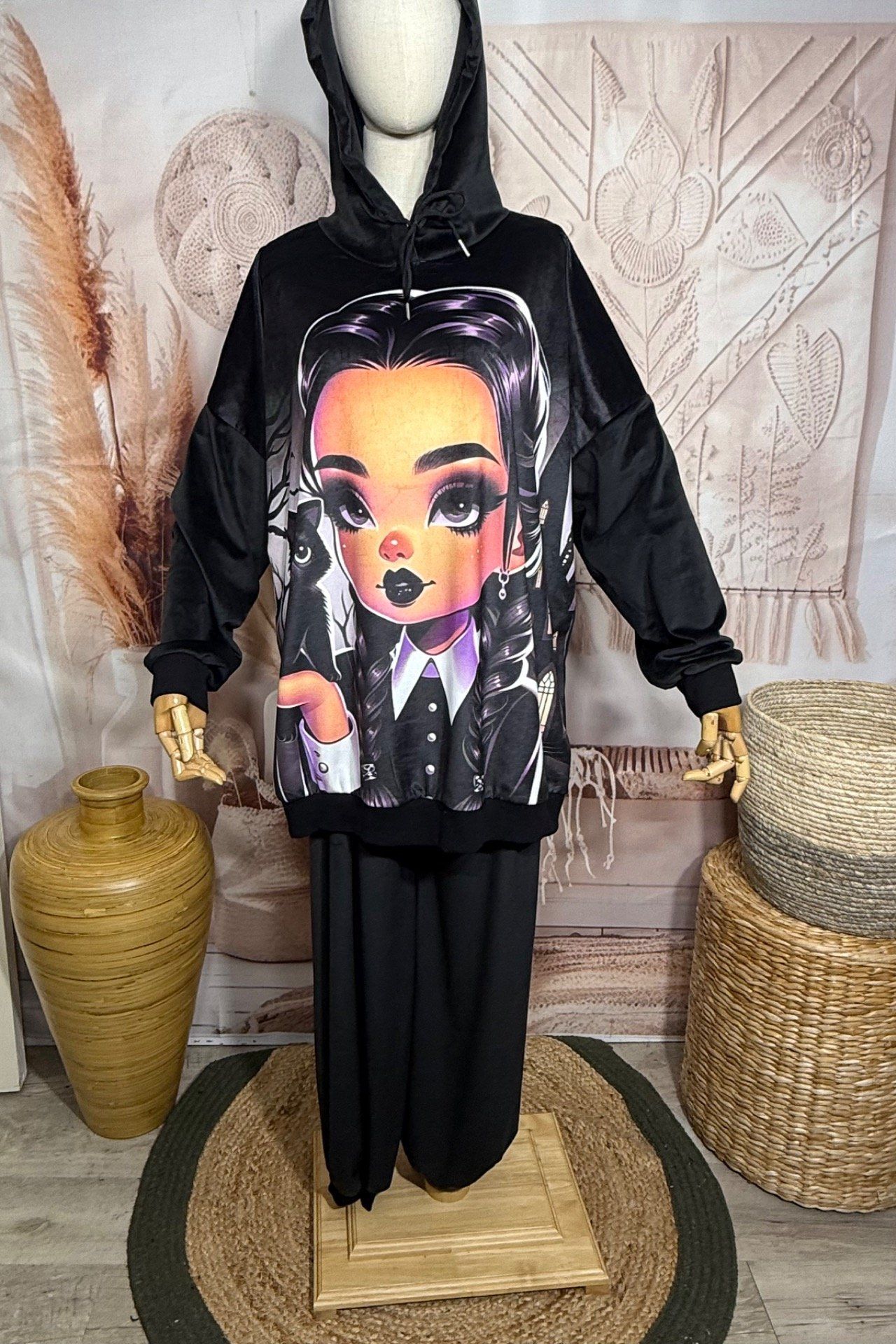 Survêtement ou Ensemble détente velours noir Mercredi Famille Adams et chat noir