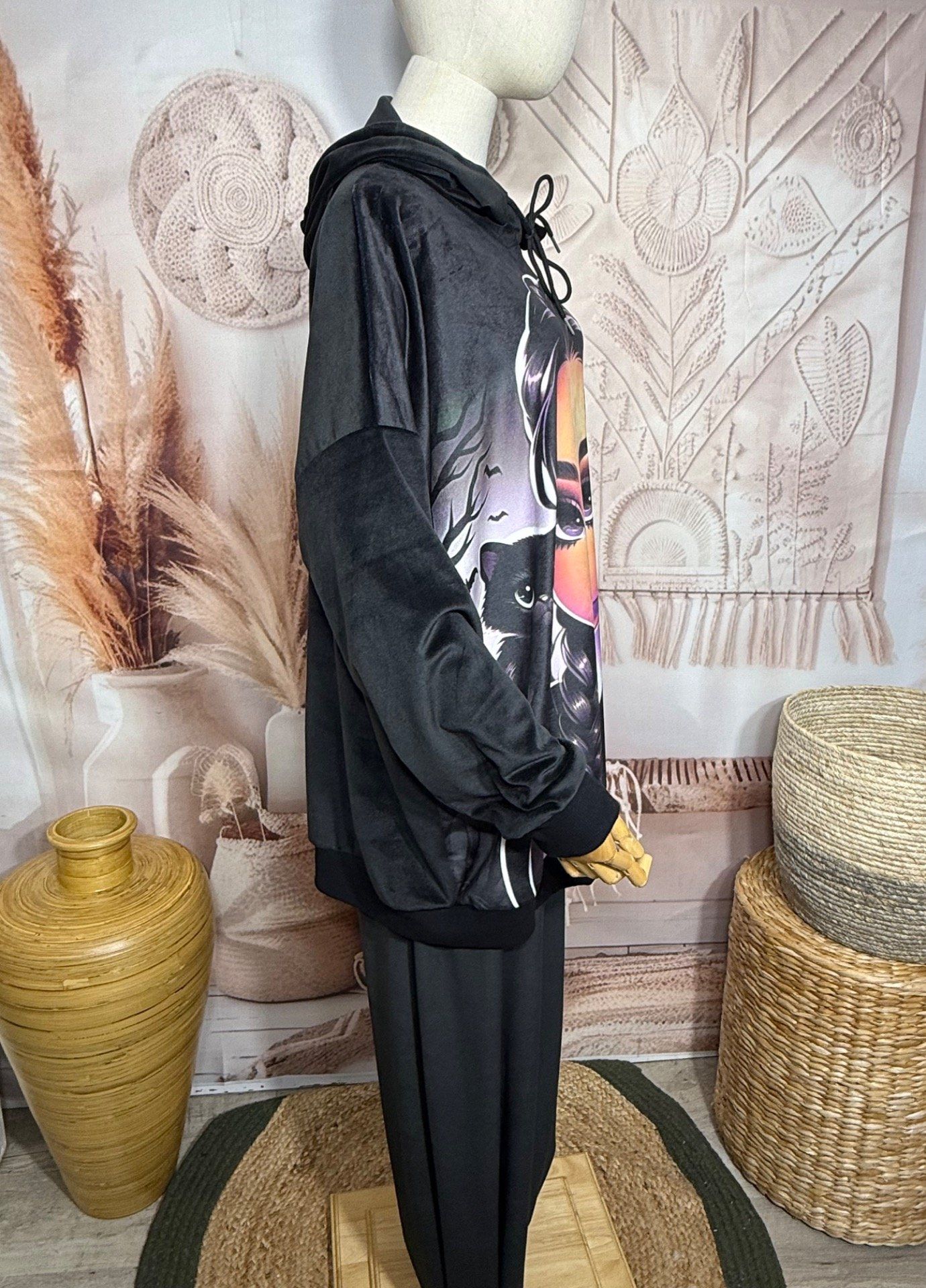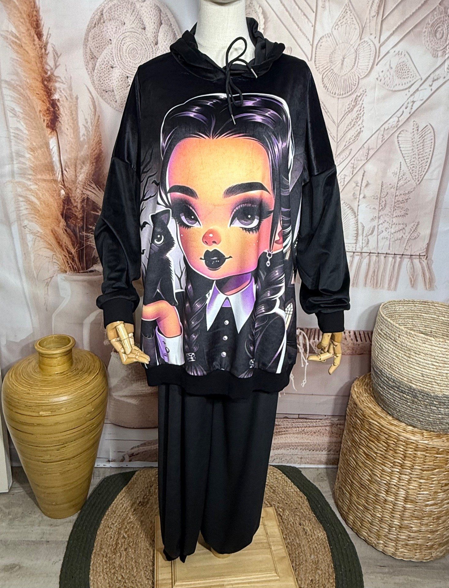 Survêtement ou Ensemble détente velours noir Mercredi Famille Adams et chat noir du 38 au 52/54