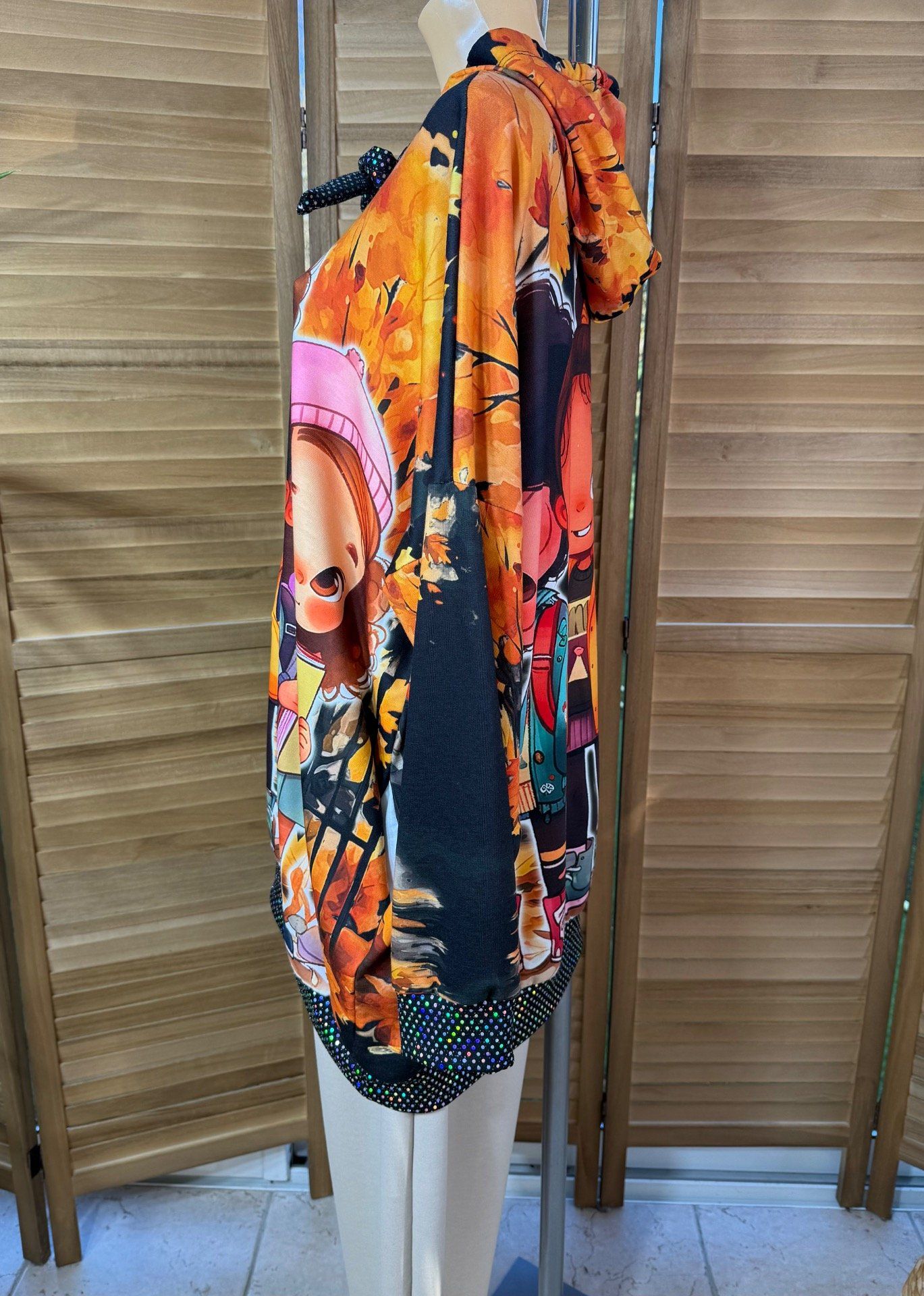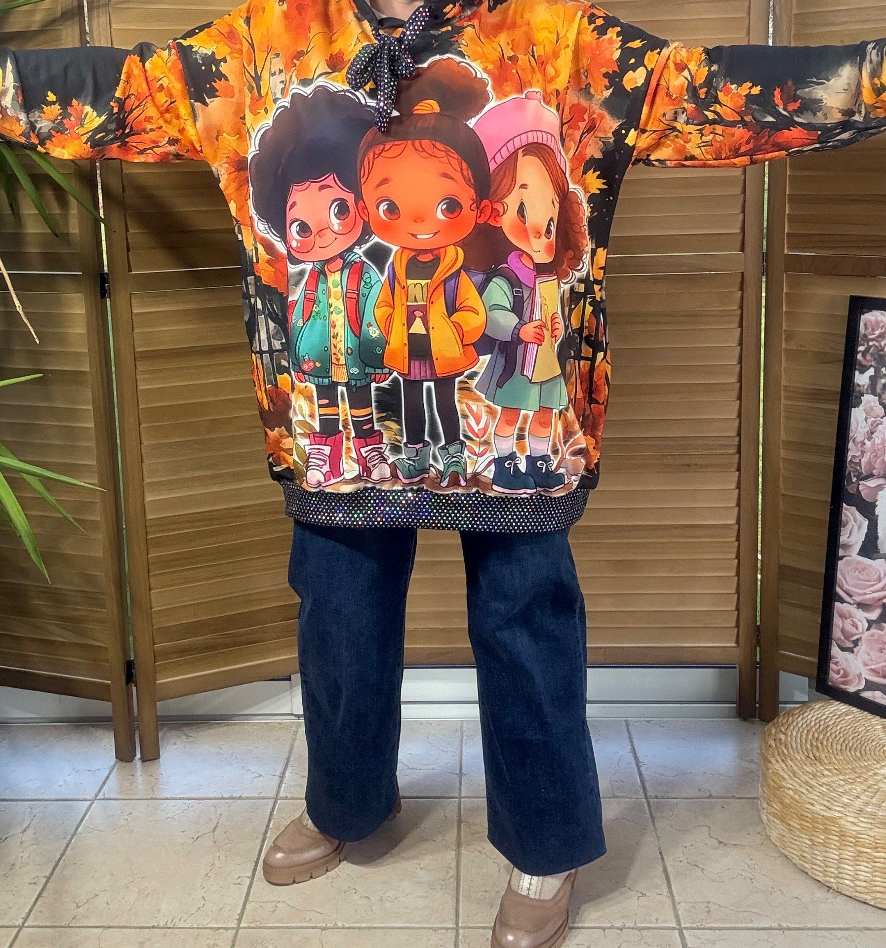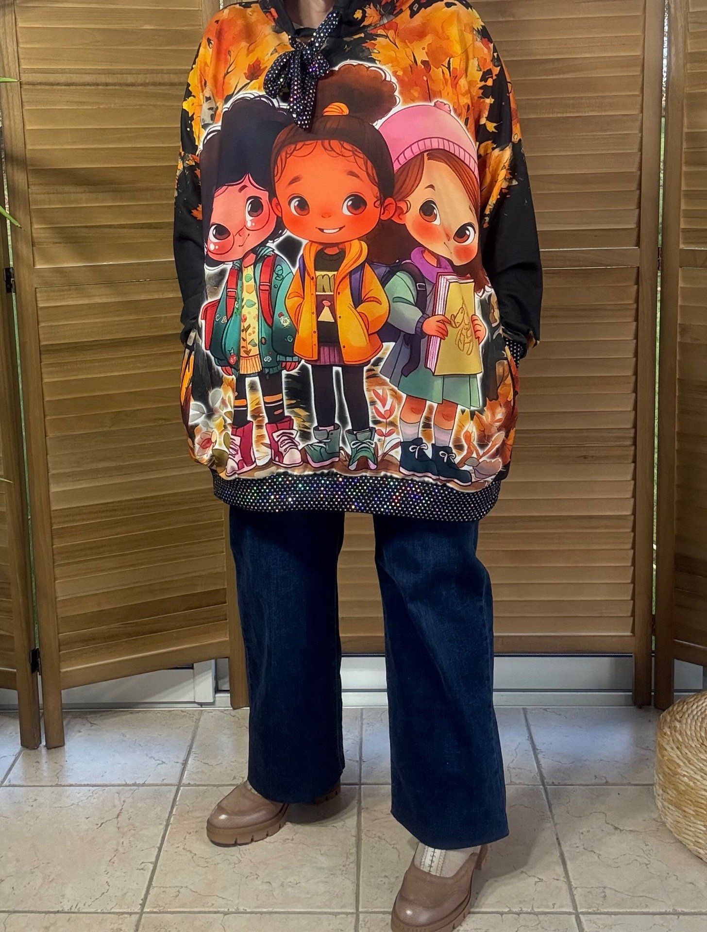 Sweat à capuche long multicolore Les Fillettes en Hiver paillettes