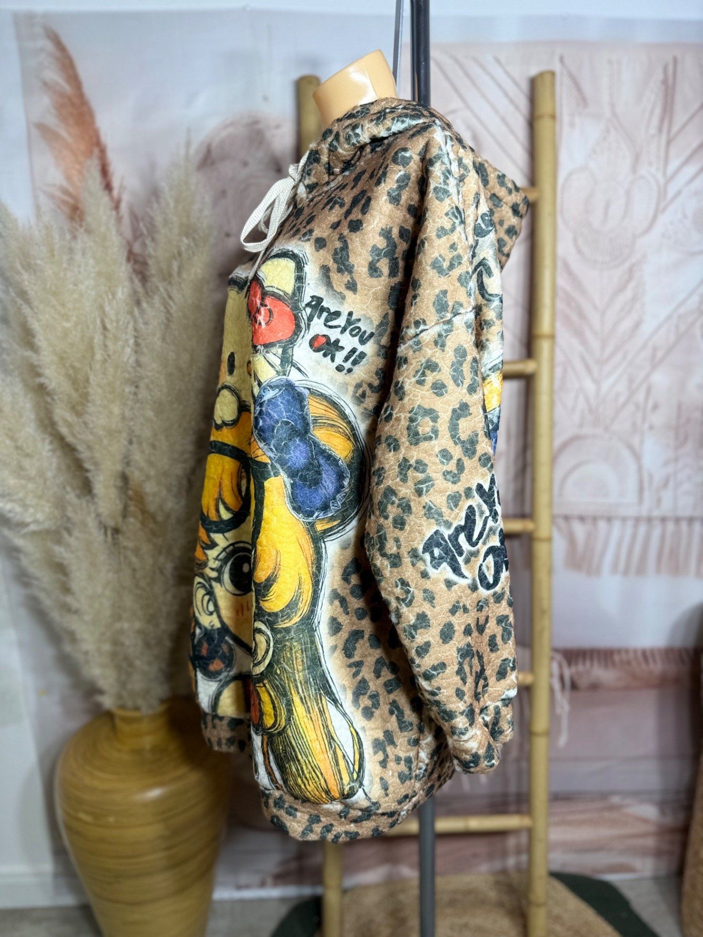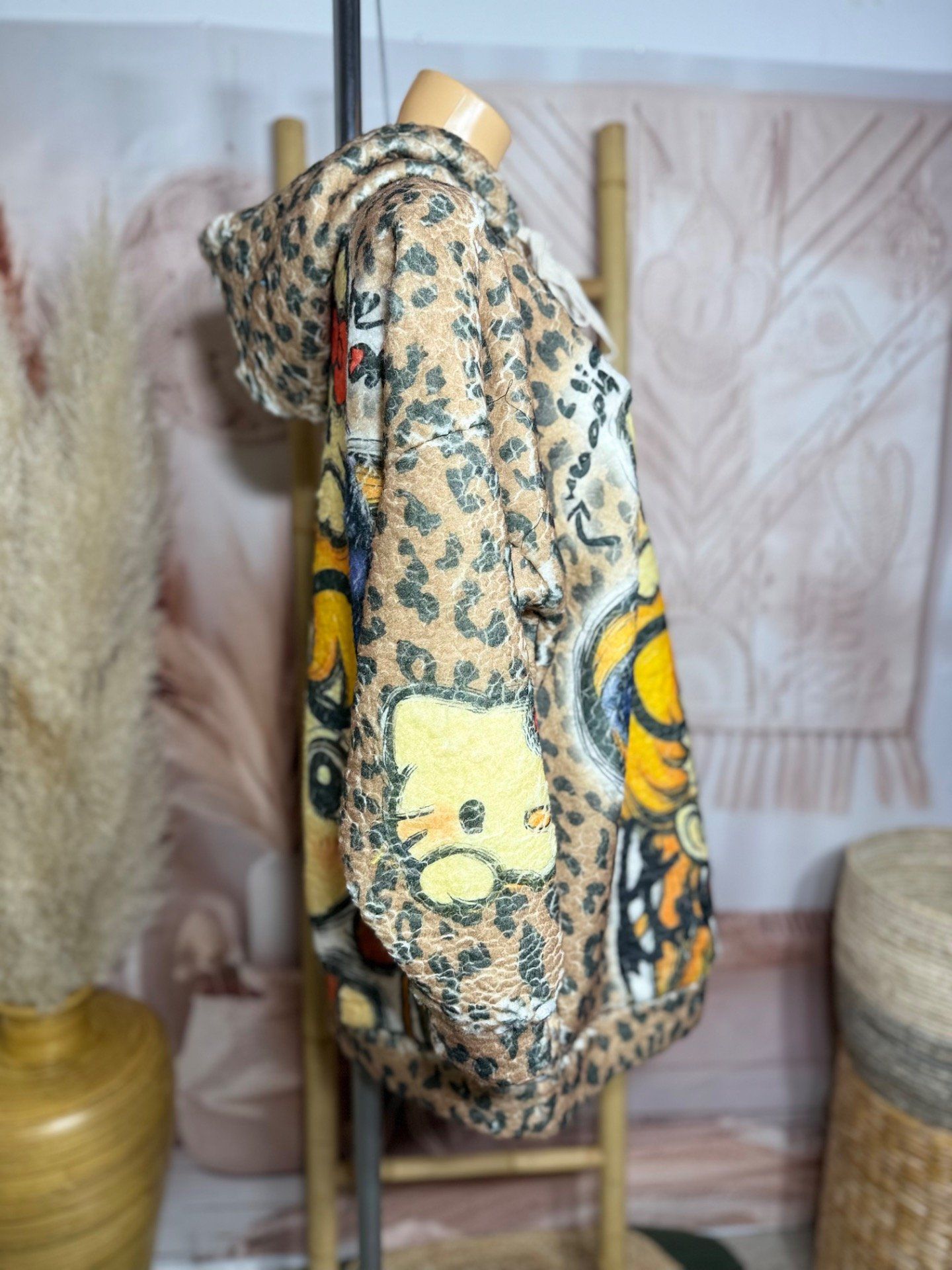 Sweat à capuche long polaire duveteuse Léopard Sailor Moon & Hello Kitty du 38 au 48/50