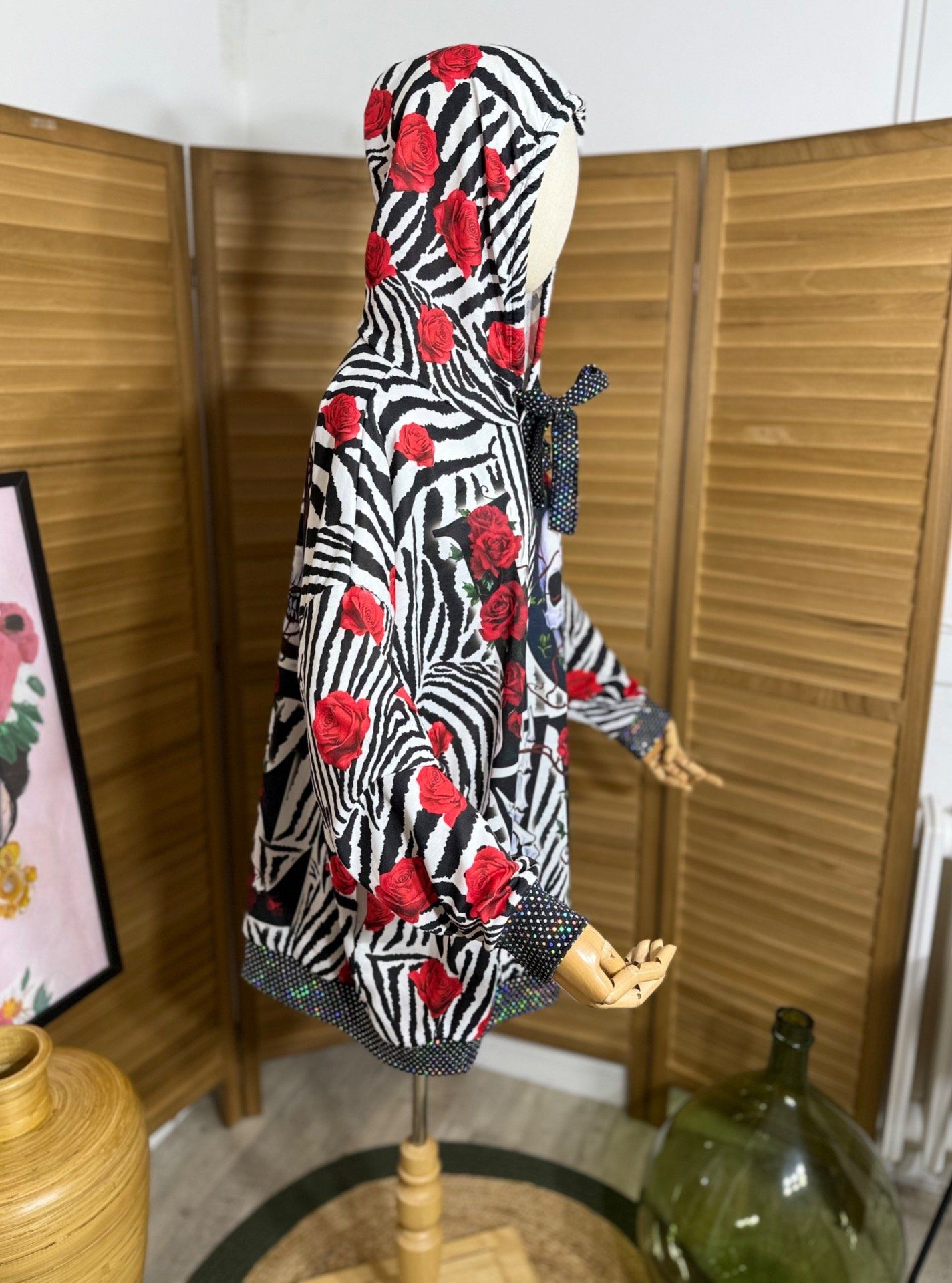 Sweat à capuche long zébré Skeleton & Red Roses paillettes du 40 au 50/52