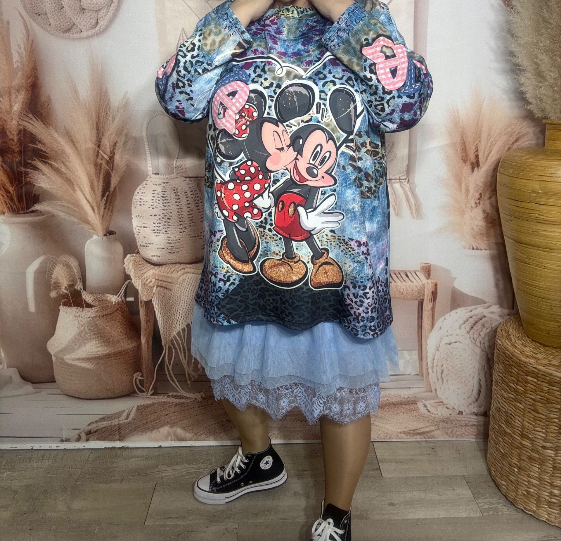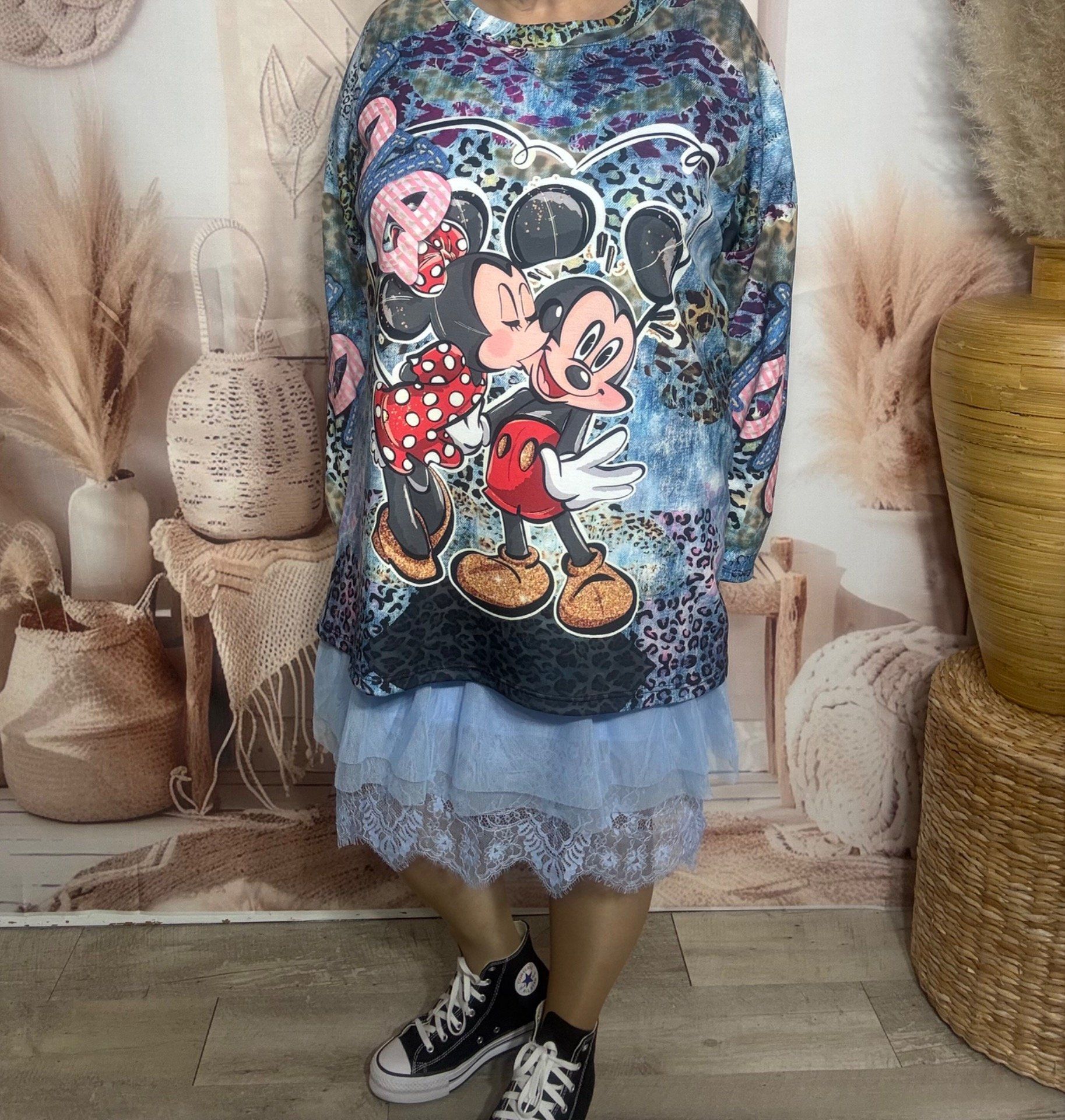 Sweat ample bleu marbré grisé Mickey Mouse & Minnie Amoureux du 40 au 52/54