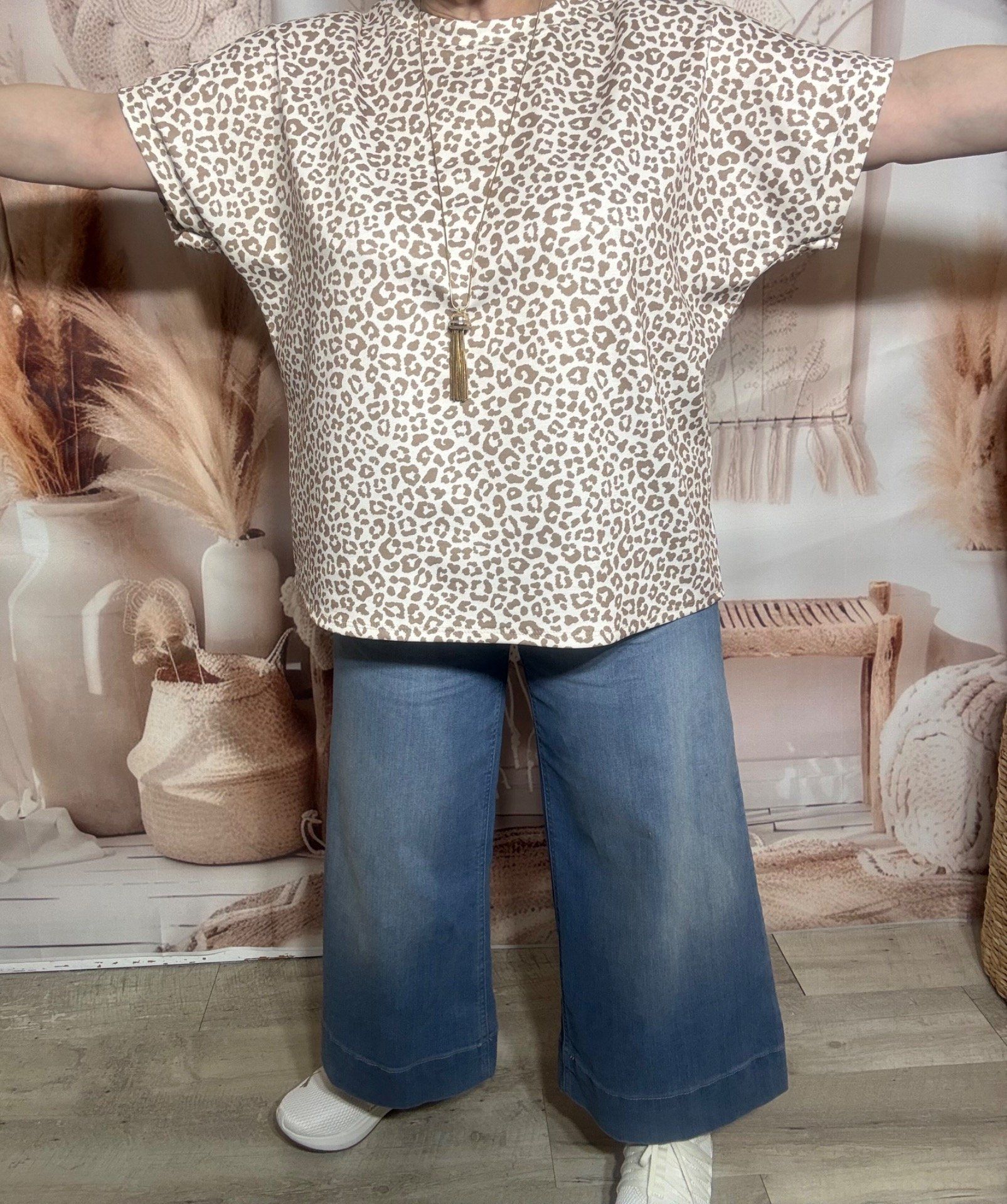 Sweat ample manches courtes Léopard Café au lait & Crème du 40 au 50/52