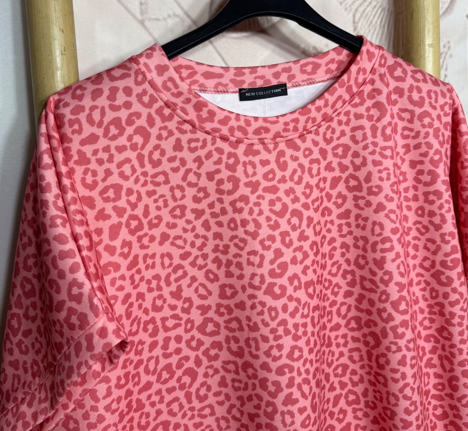 Sweat ample manches courtes Léopard Corail & Rose Abricoté
