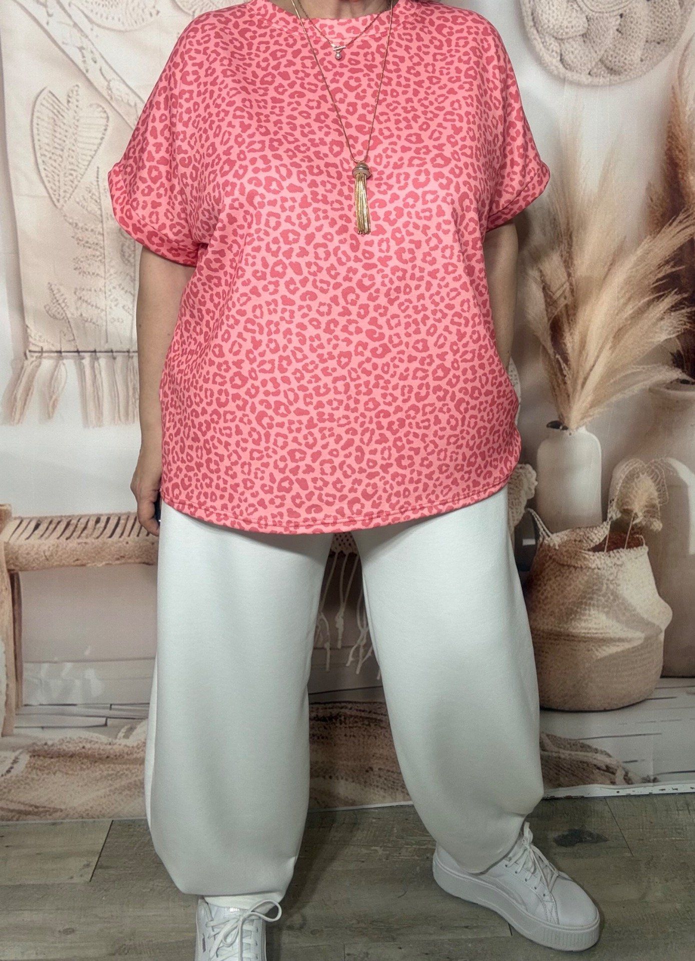 Sweat ample manches courtes Léopard Corail & Rose Abricoté du 40 au 52/54