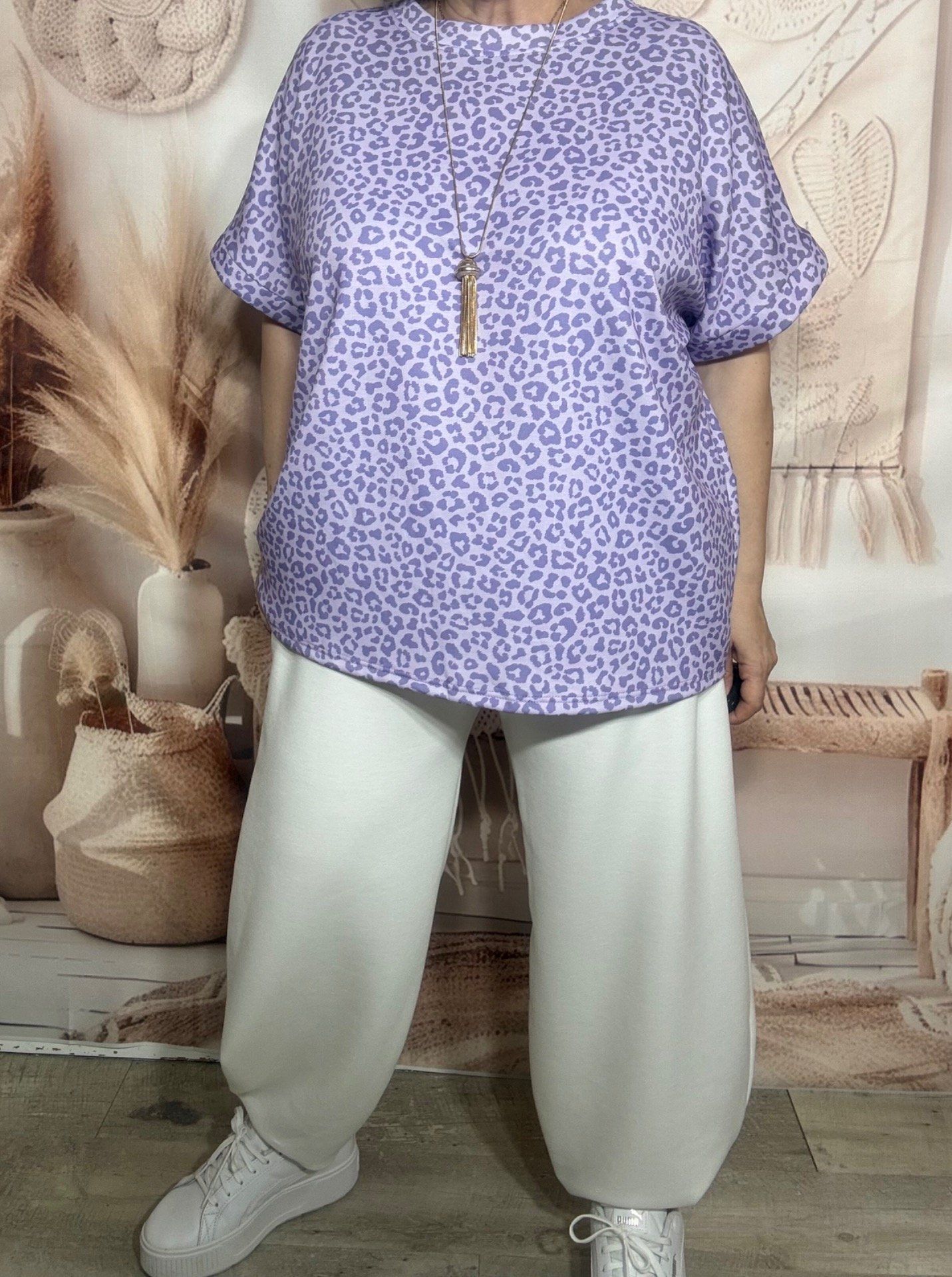 Sweat ample manches courtes Léopard Lilas & Violet du 40 au 52/54