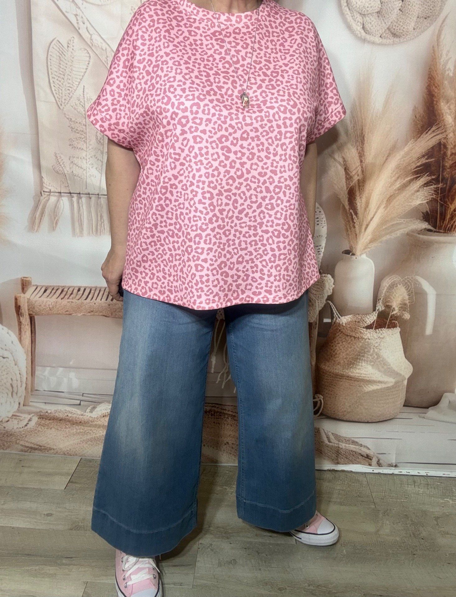 Sweat ample manches courtes Léopard Vieux Rose & Rose poudré du 40 au 50/52