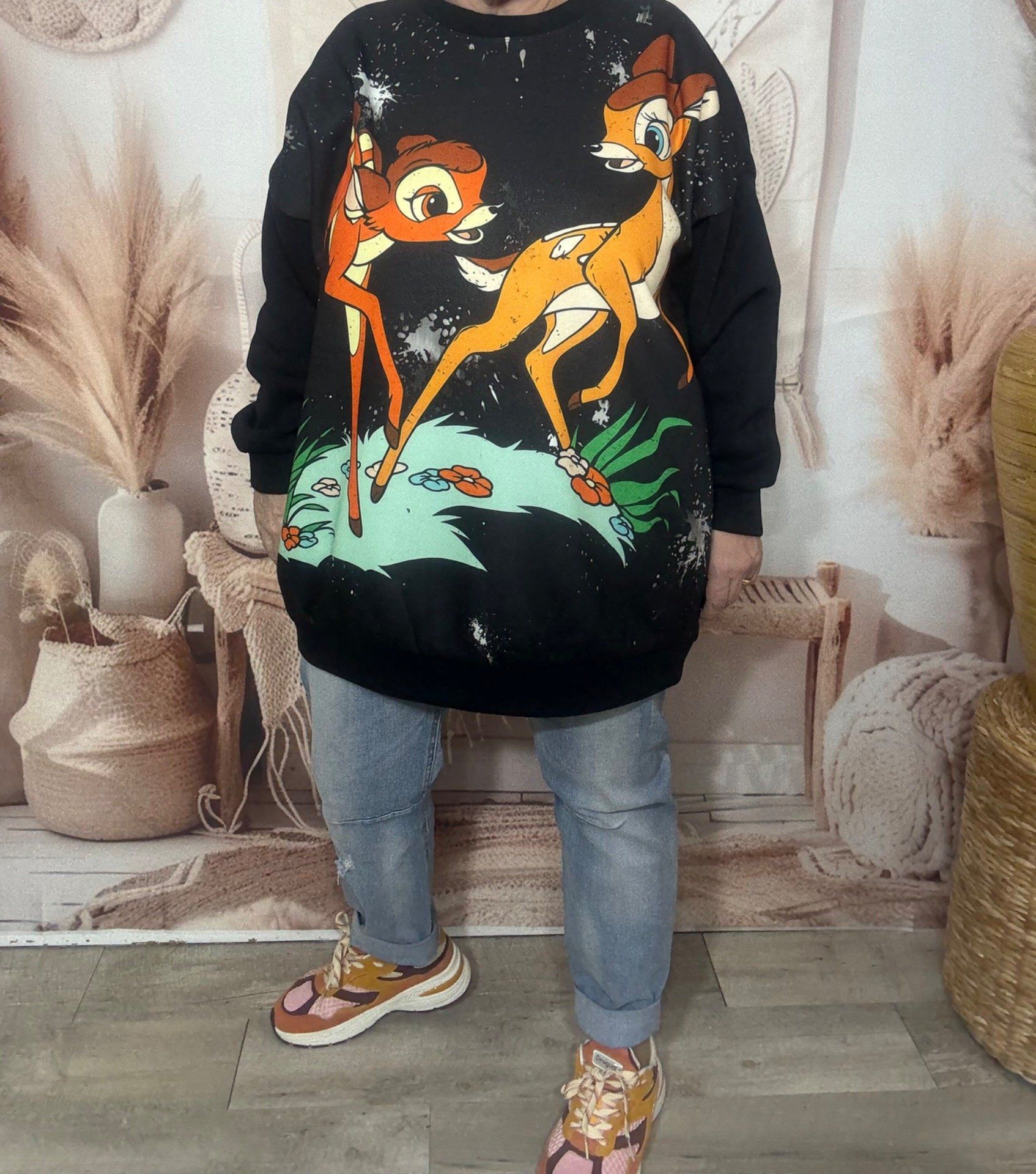 Sweat ample noir molletonné Bambi Disney Wolrd du 40 au 50