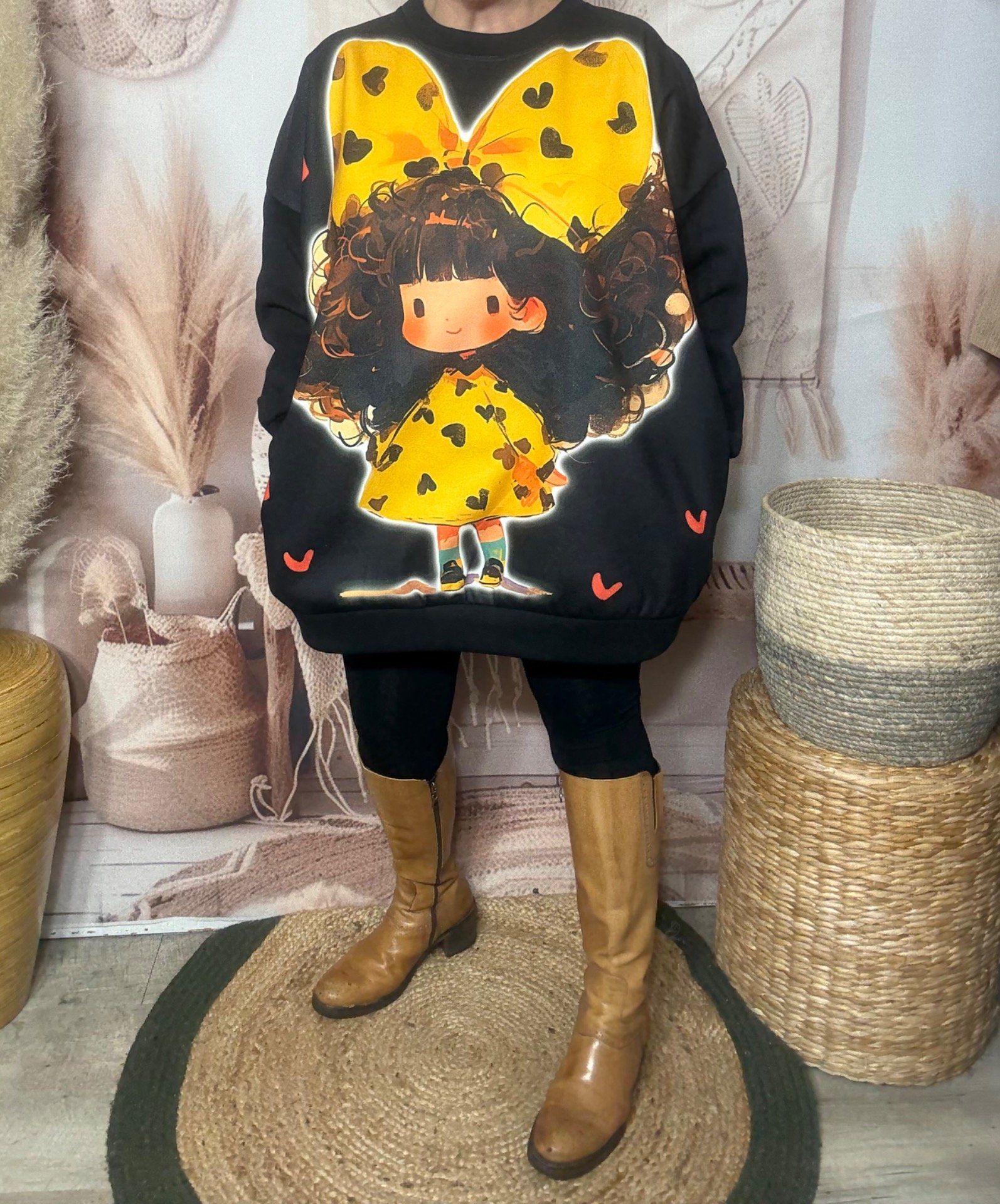Sweat ample noir molletonné L'adorable Fillette hivernale