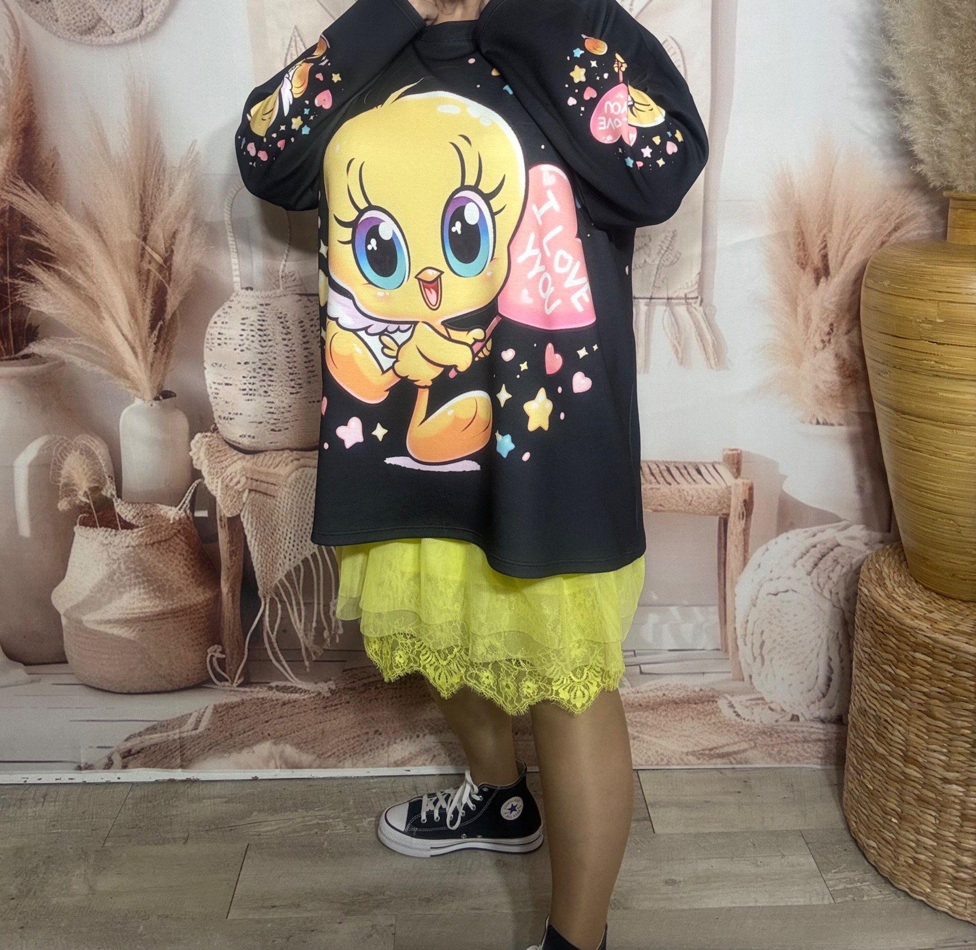 Sweat ample noir Titi Baby Angel Love étoiles coeurs multicolores du 40 au 52/54