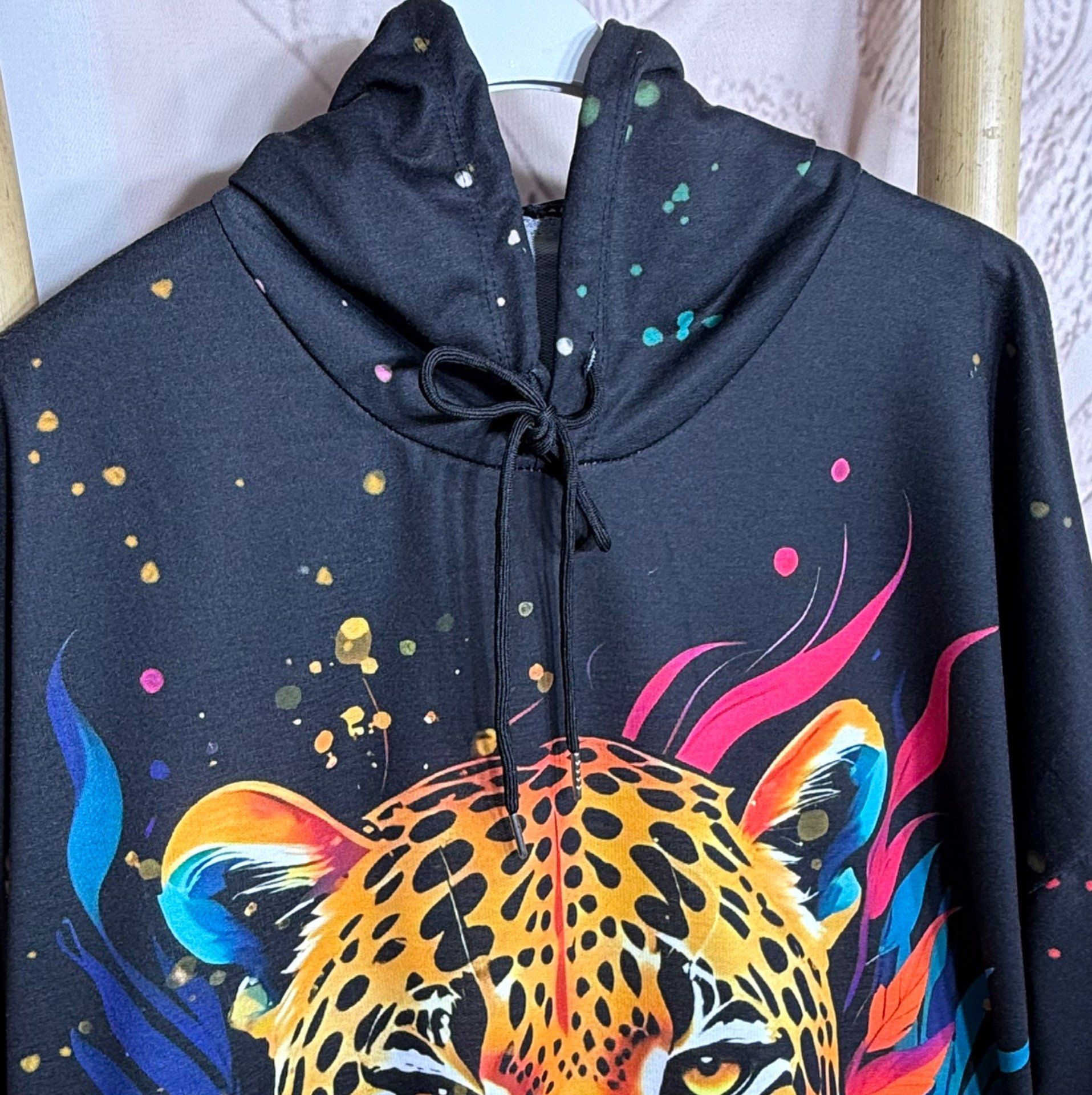 Sweat fin à capuche long noir Le Majestueux Tigre multicolore