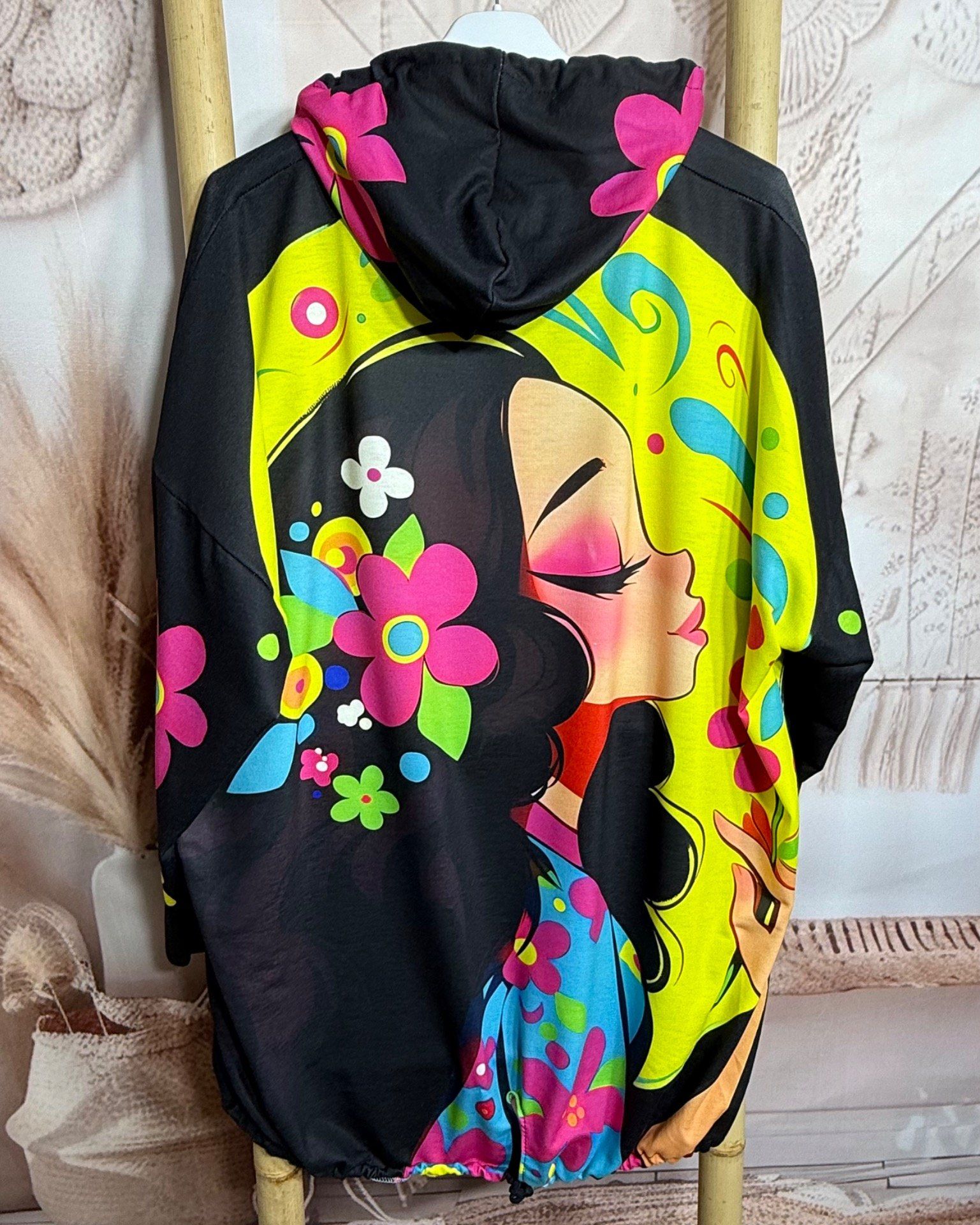 Sweat fin à capuche long noir The Pretty Hippie Girl du 40 au 52/54