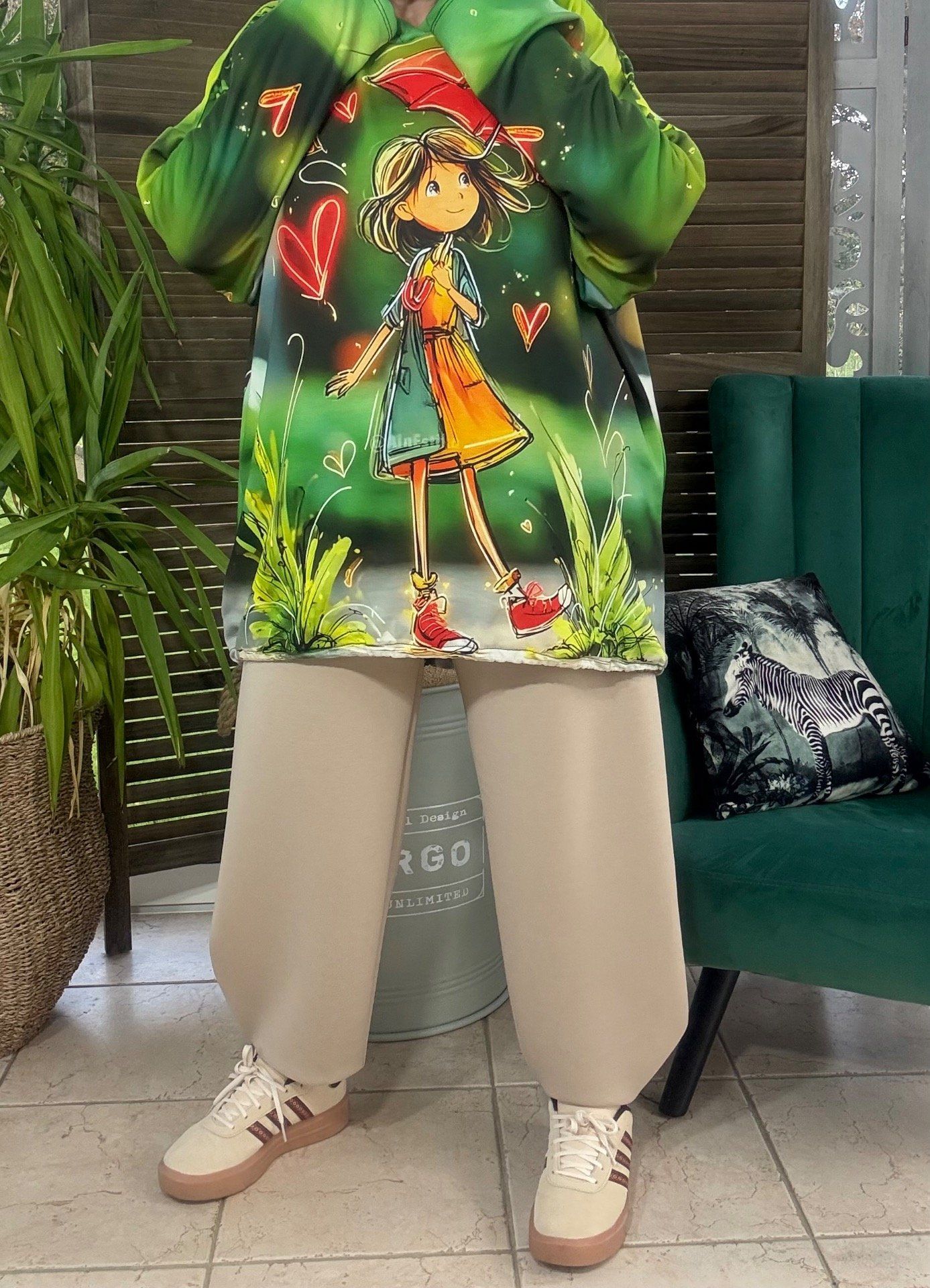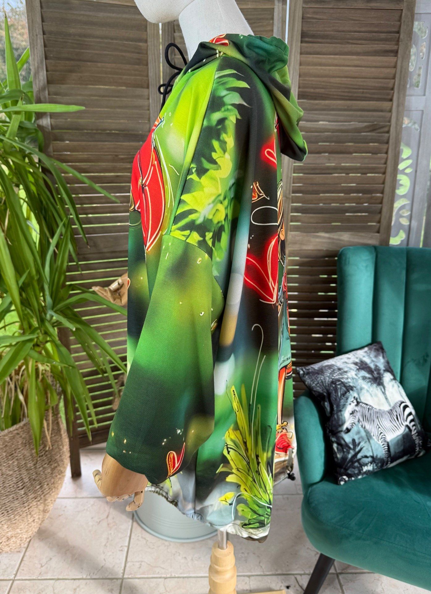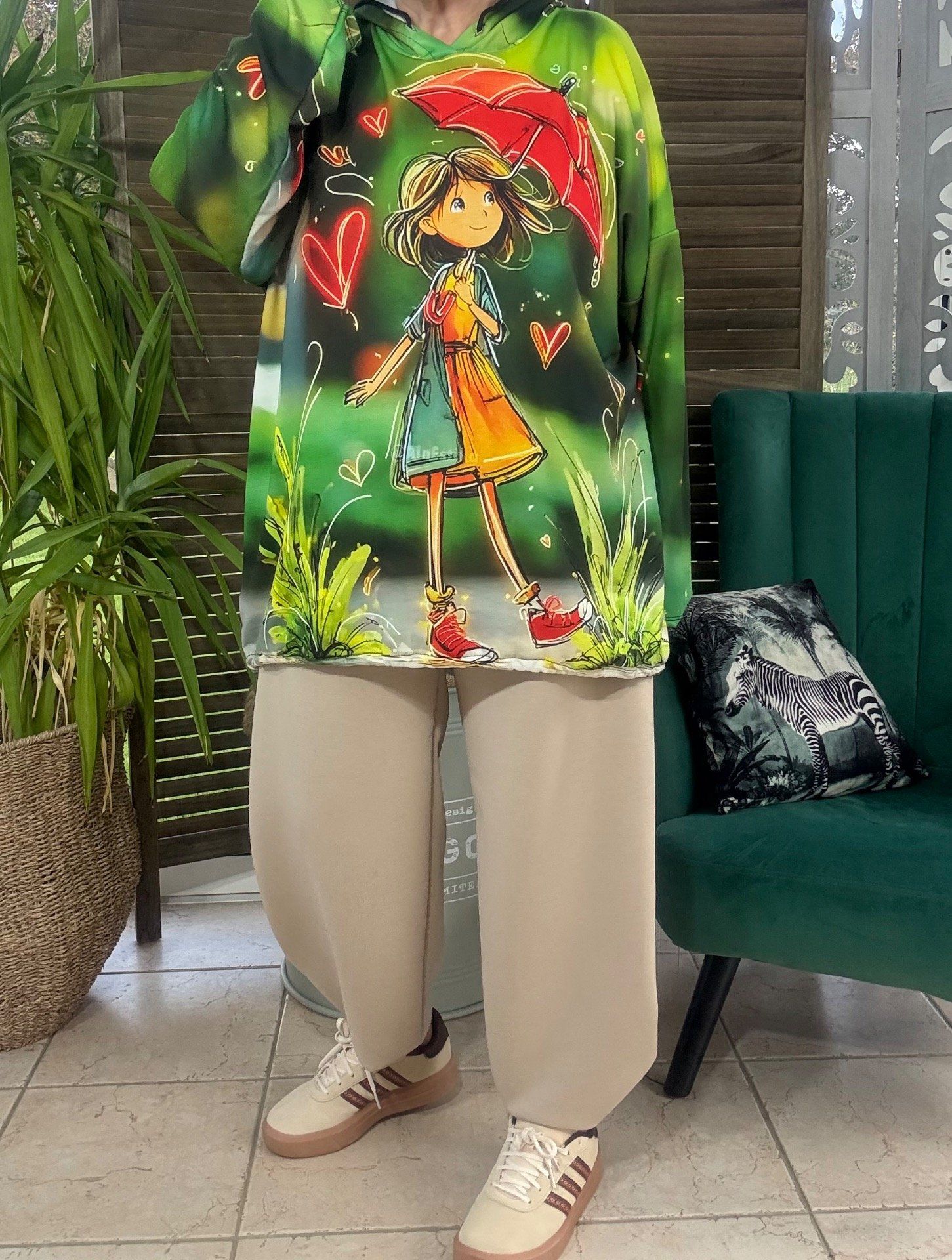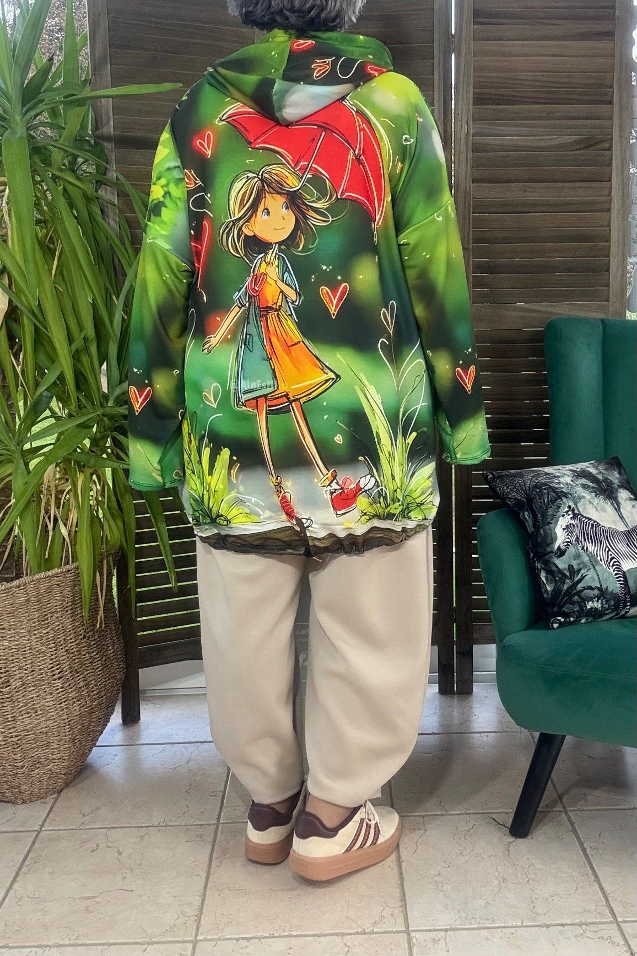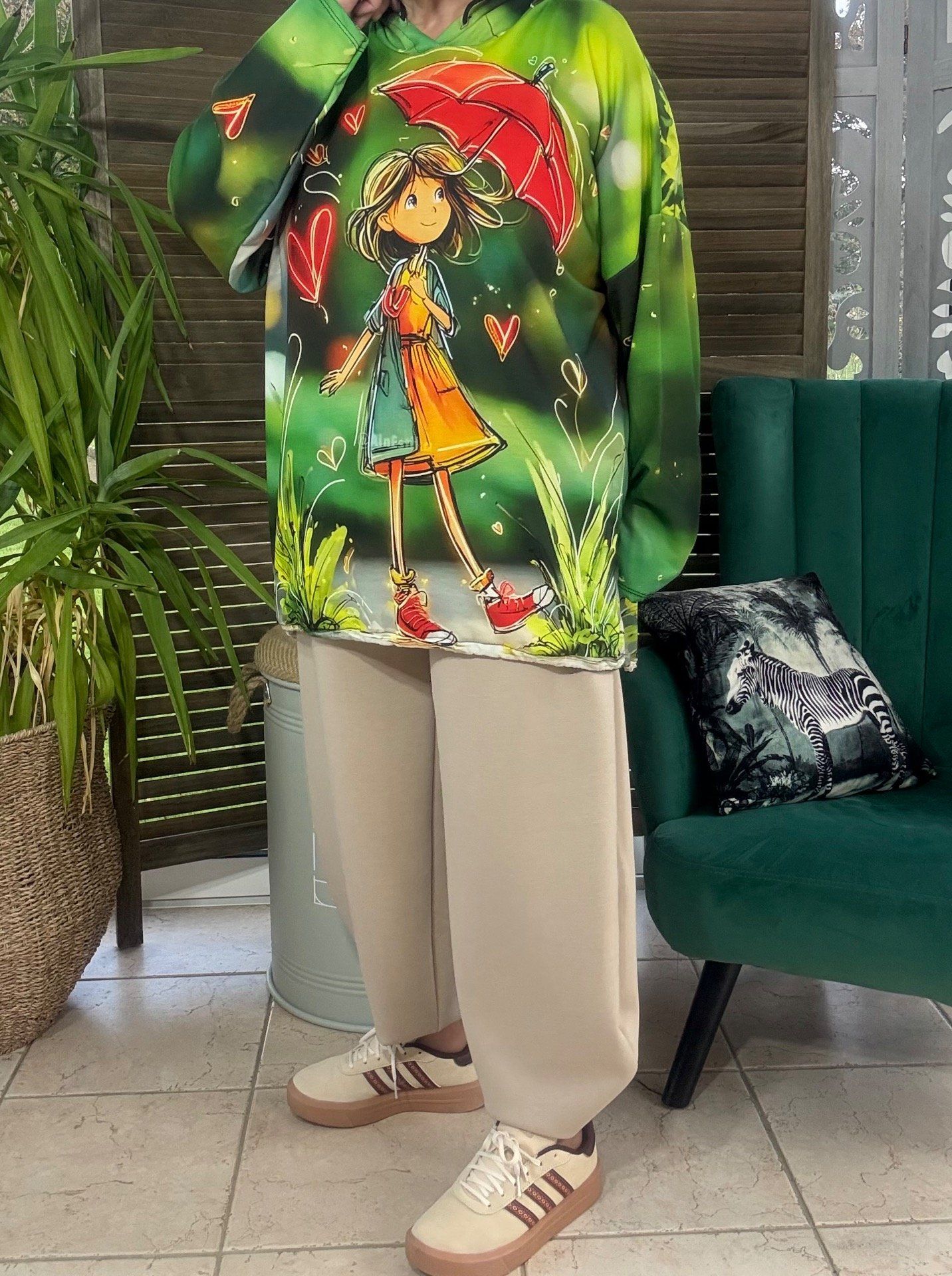 Sweat fin à capuche long vert La Fillette au Parapluie