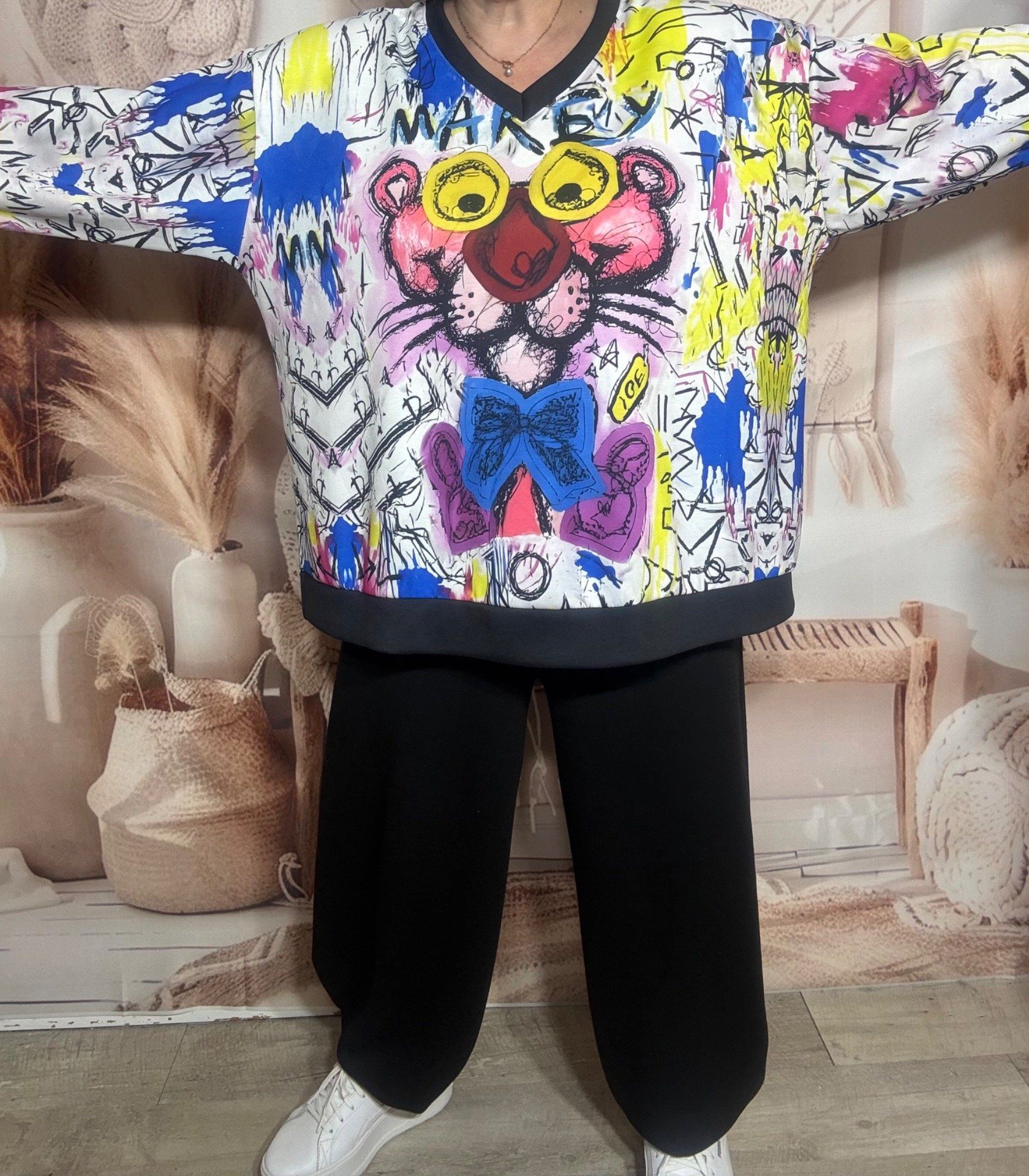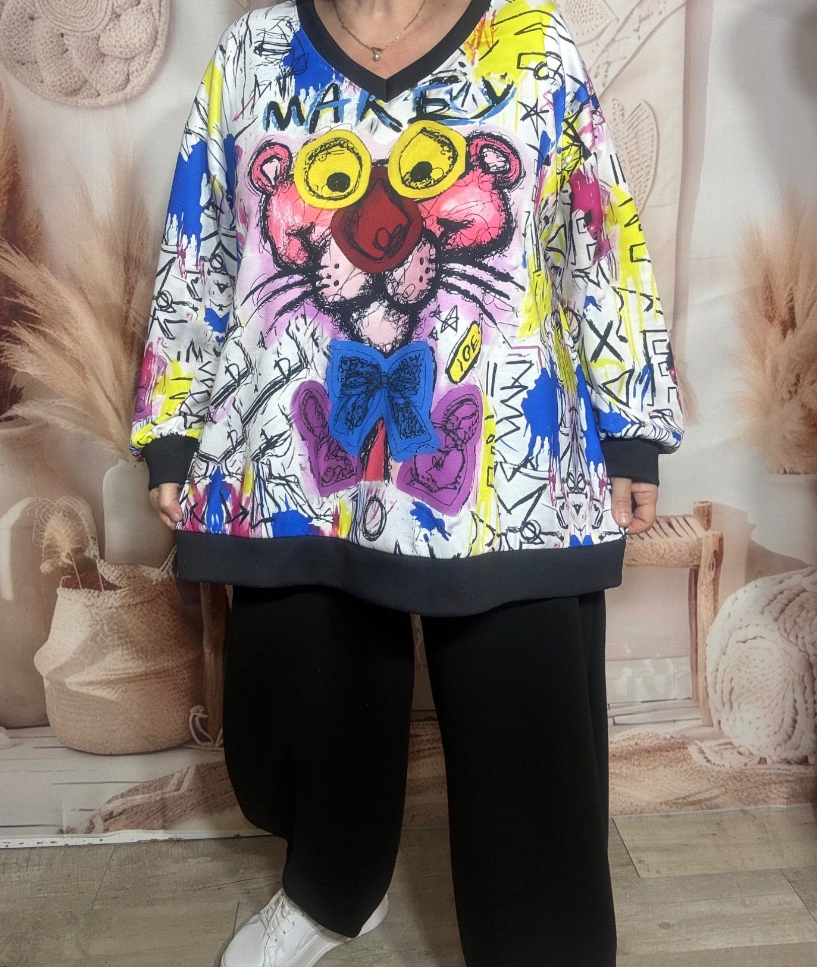 Sweat multicolore manches longues La Panthère Rose Street Art du 40 au 52/54