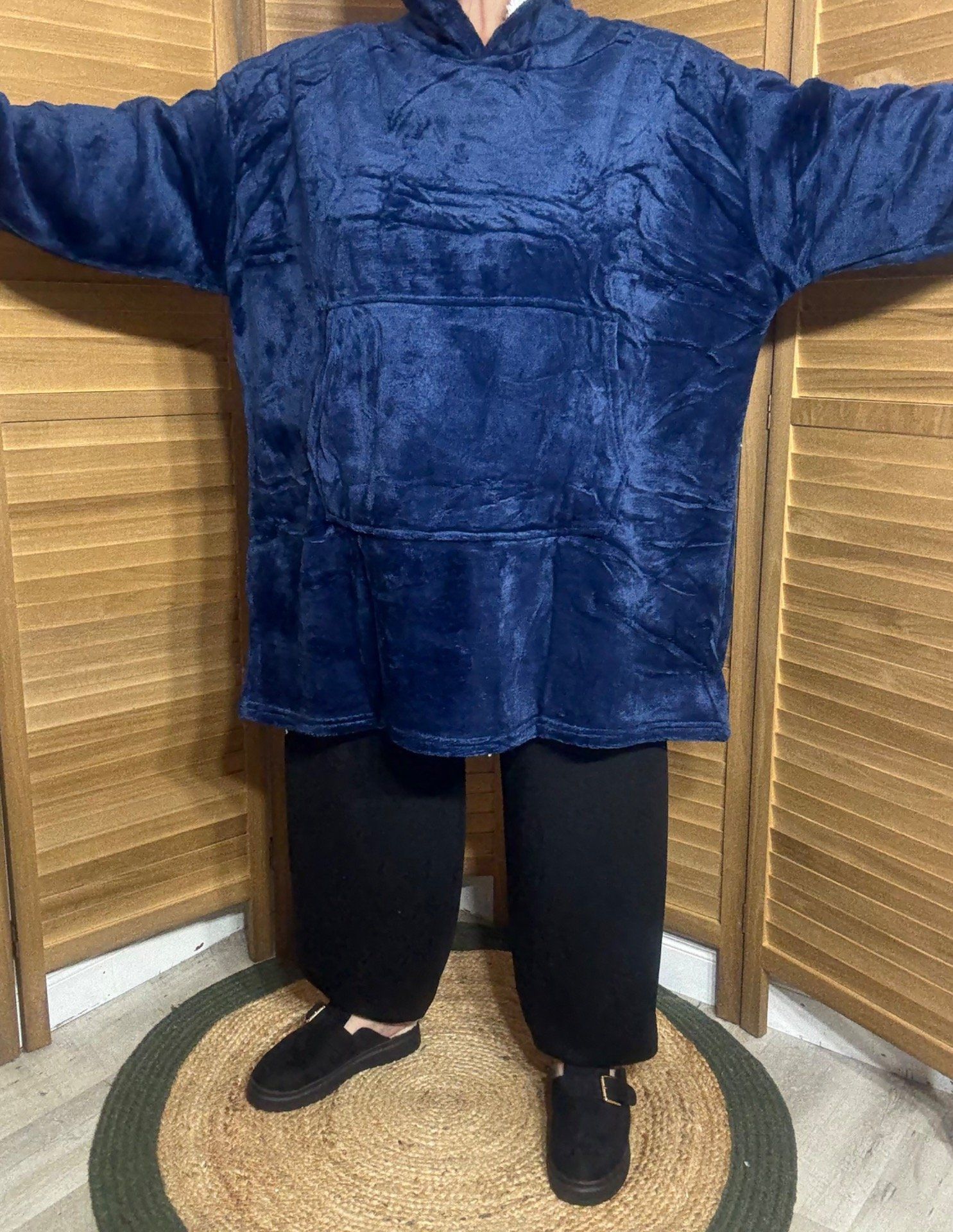 Sweat-plaid à capuche long velours doublé polaire bleu marine douceur +++