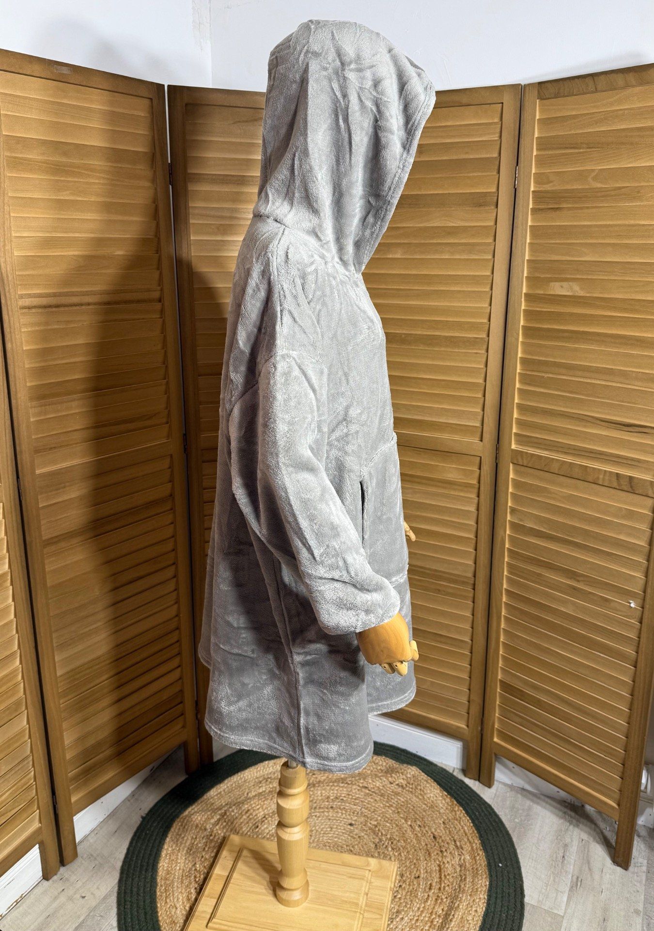 Sweat-plaid à capuche long velours doublé polaire gris perle douceur +++