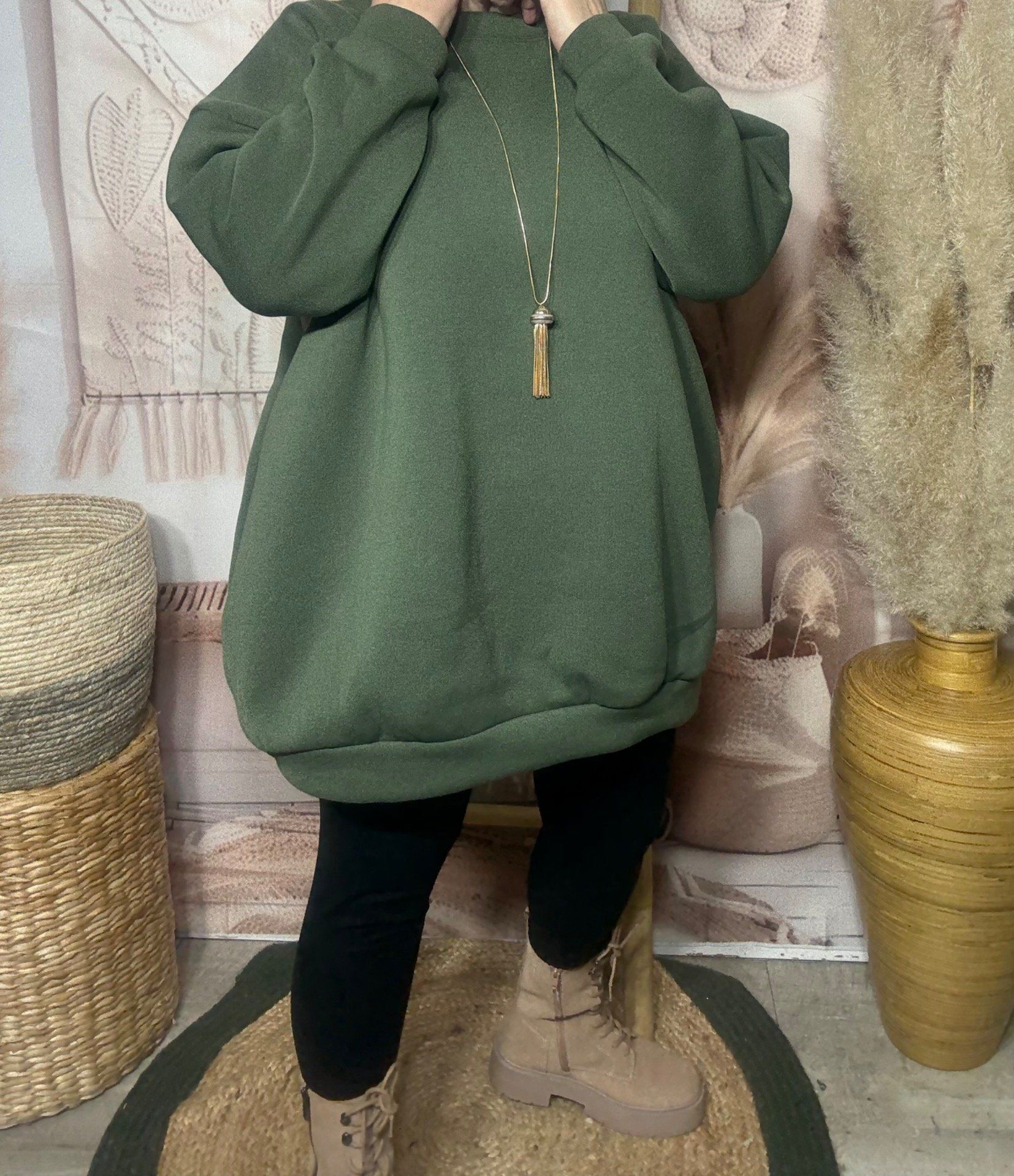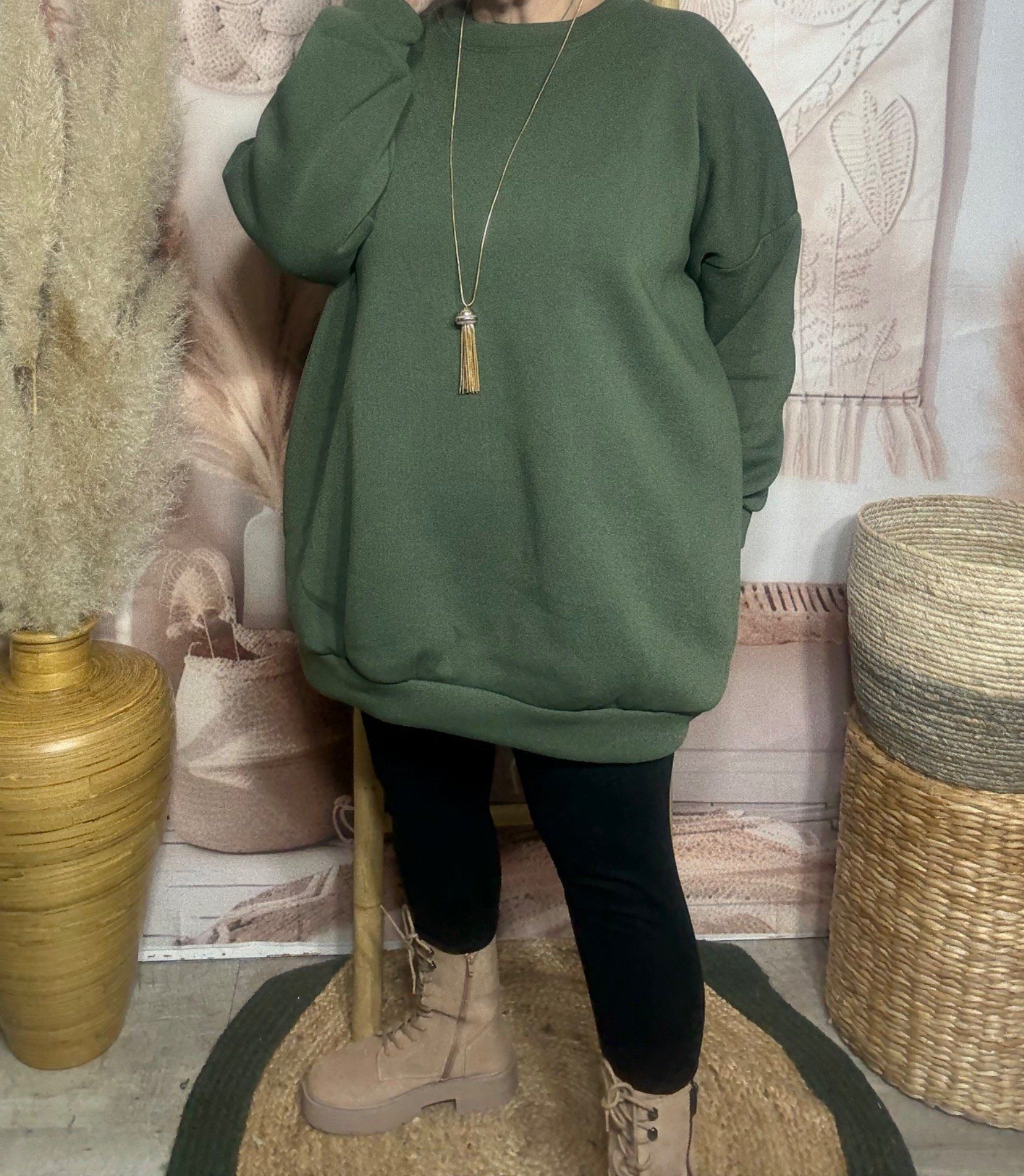 Sweat trapèze long overisze molletonné kaki du 40 au 52