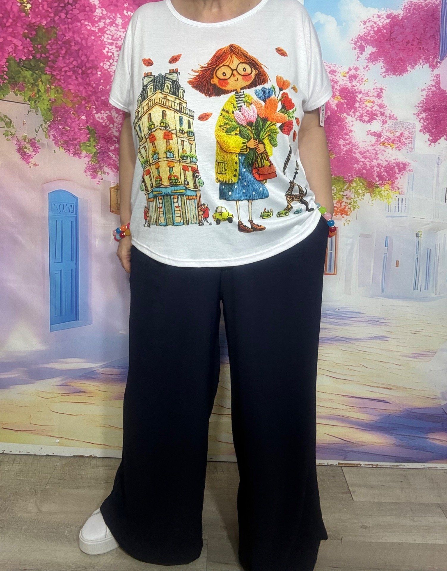 Tee-shirt ample blanc La Parisienne en balade du 38 au 50/52