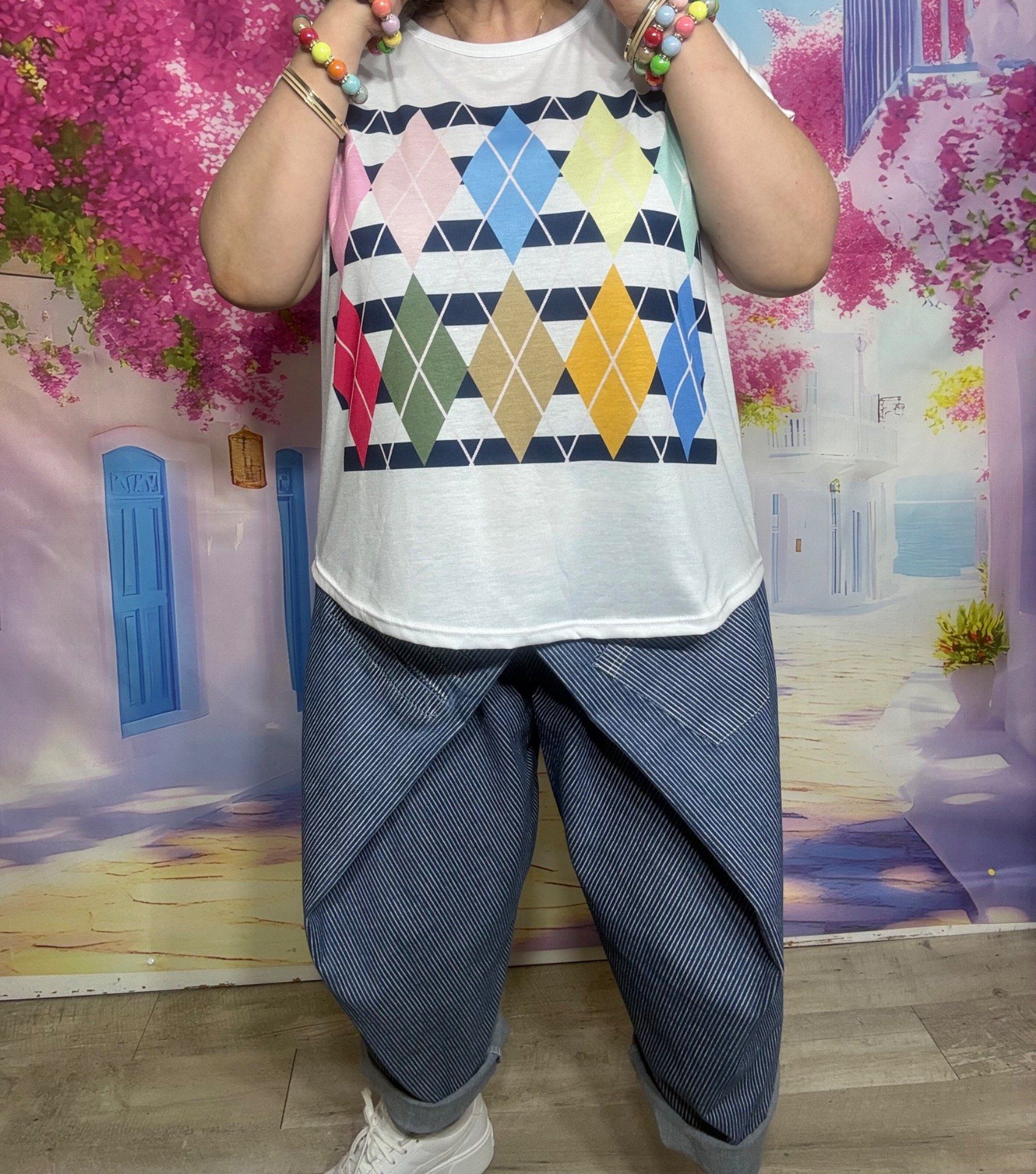 Tee-shirt ample blanc Les Losanges Argyle Jacquard multicolores du 38 au 50/52