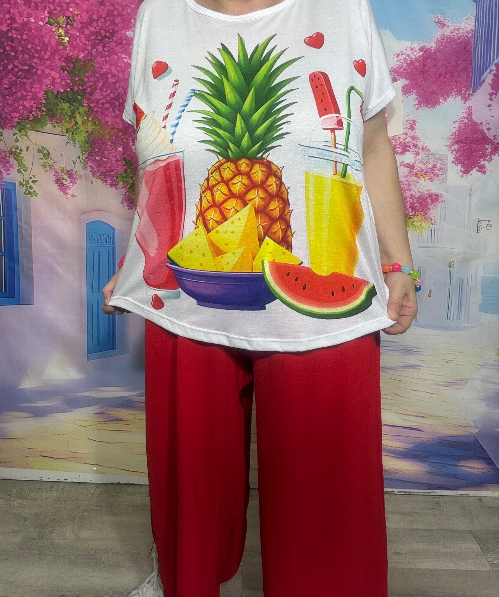 Tee-shirt ample blanc Salade de Fruits Summer Vibes du 38 au 50/52