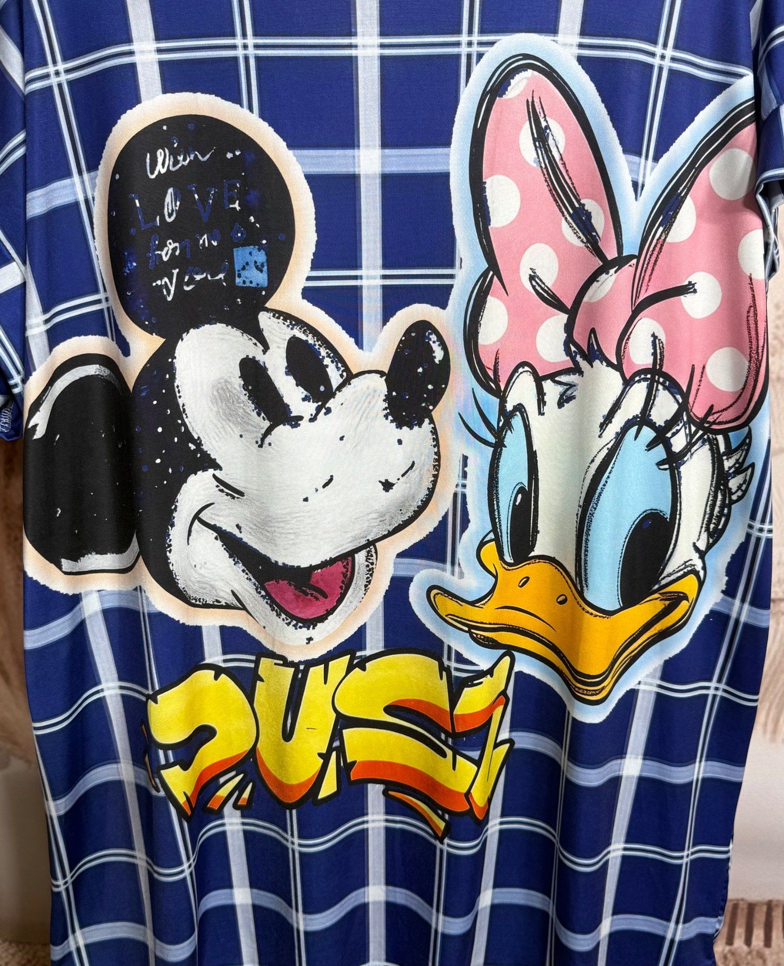 Tee-shirt fin ample lycra carreaux marine Mickey & Daisy