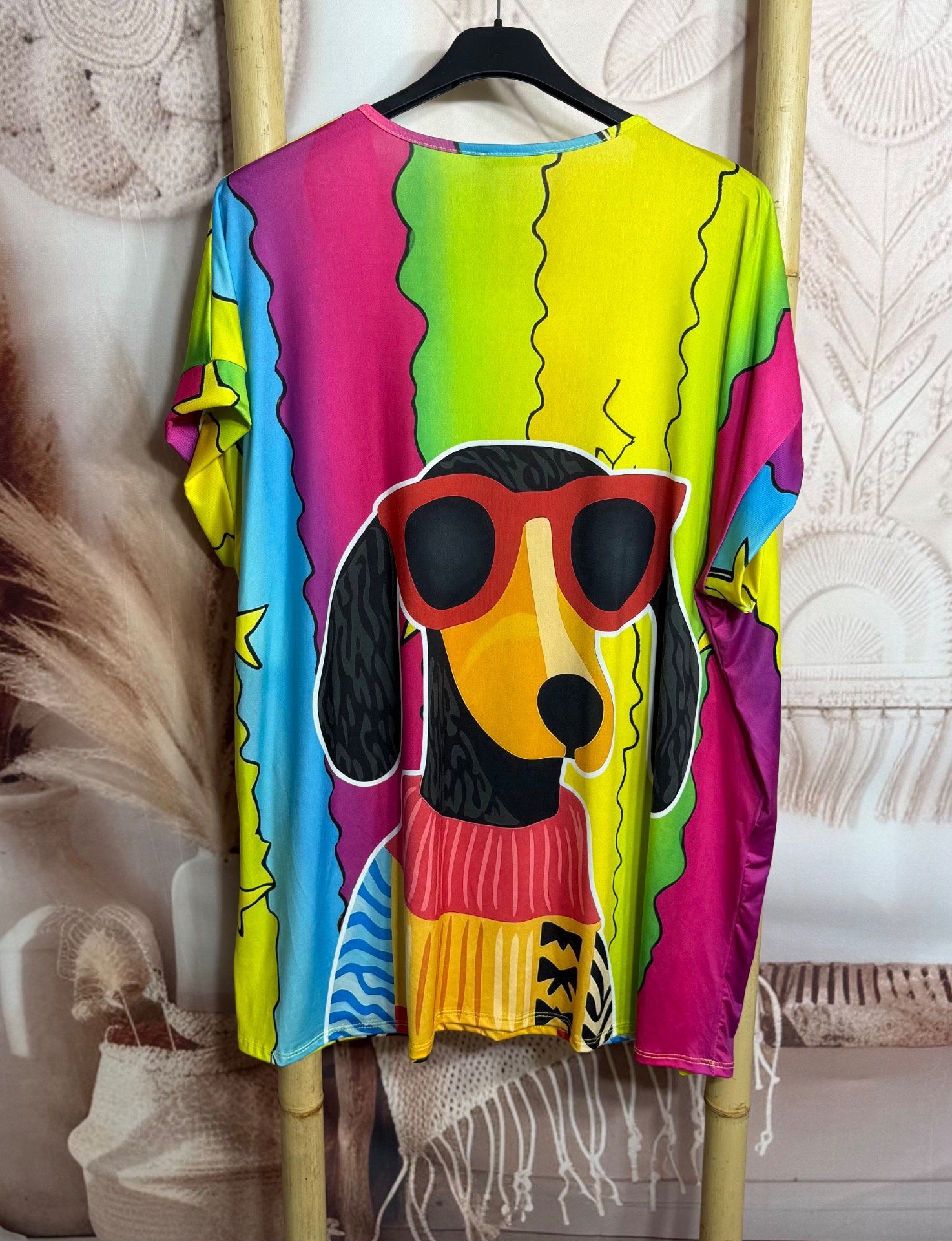 Tee-shirt fin ample lycra rayé Arc-en-ciel Mon Teckel à lunettes