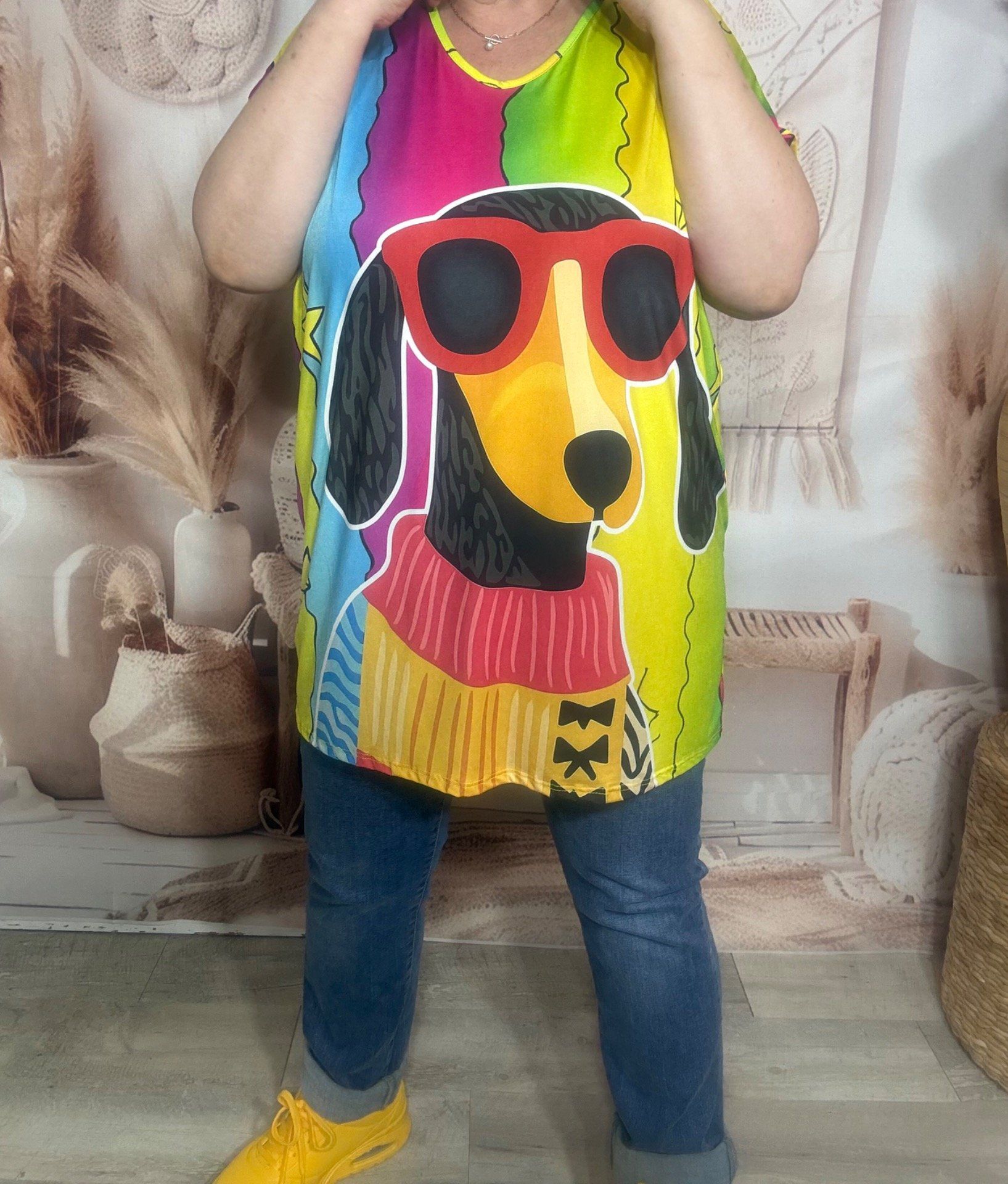 Tee-shirt fin ample lycra rayé Arc-en-ciel Mon Teckel à lunettes du 40 au 52/54