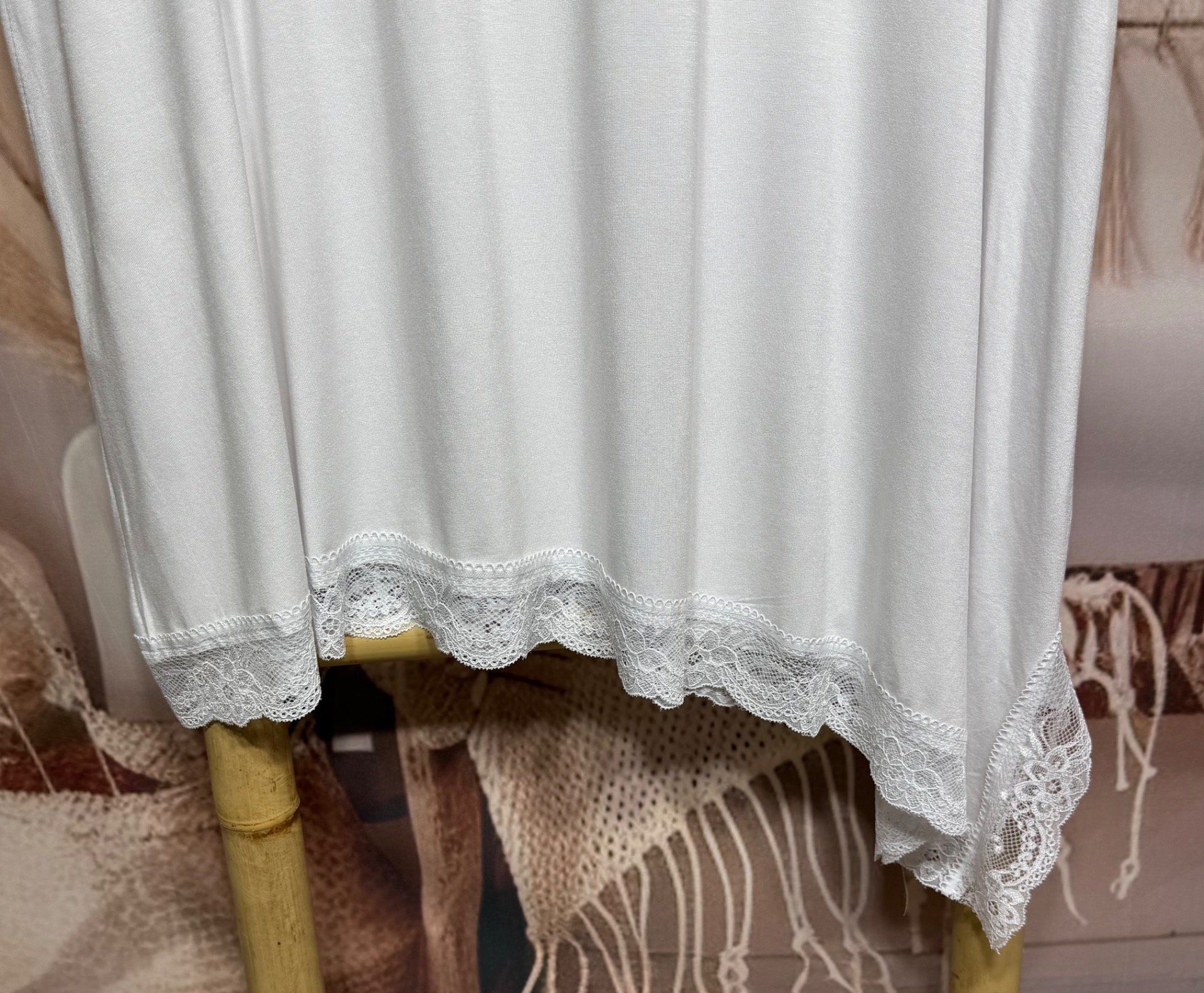 Top ample asymétrique blanc manches courtes & dentelle en bas douceur +++ du 40 au 52/54