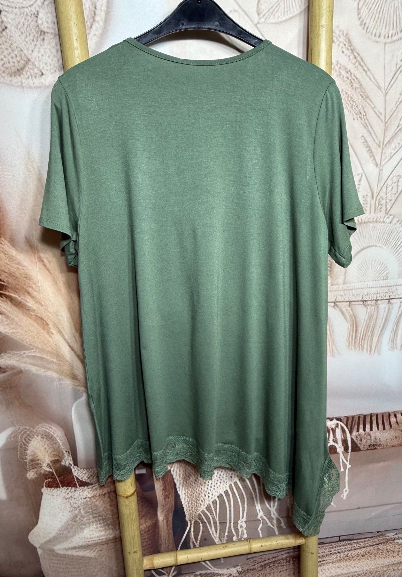 Top ample asymétrique Kaki manches courtes & dentelle en bas douceur +++ du 40 au 52/54