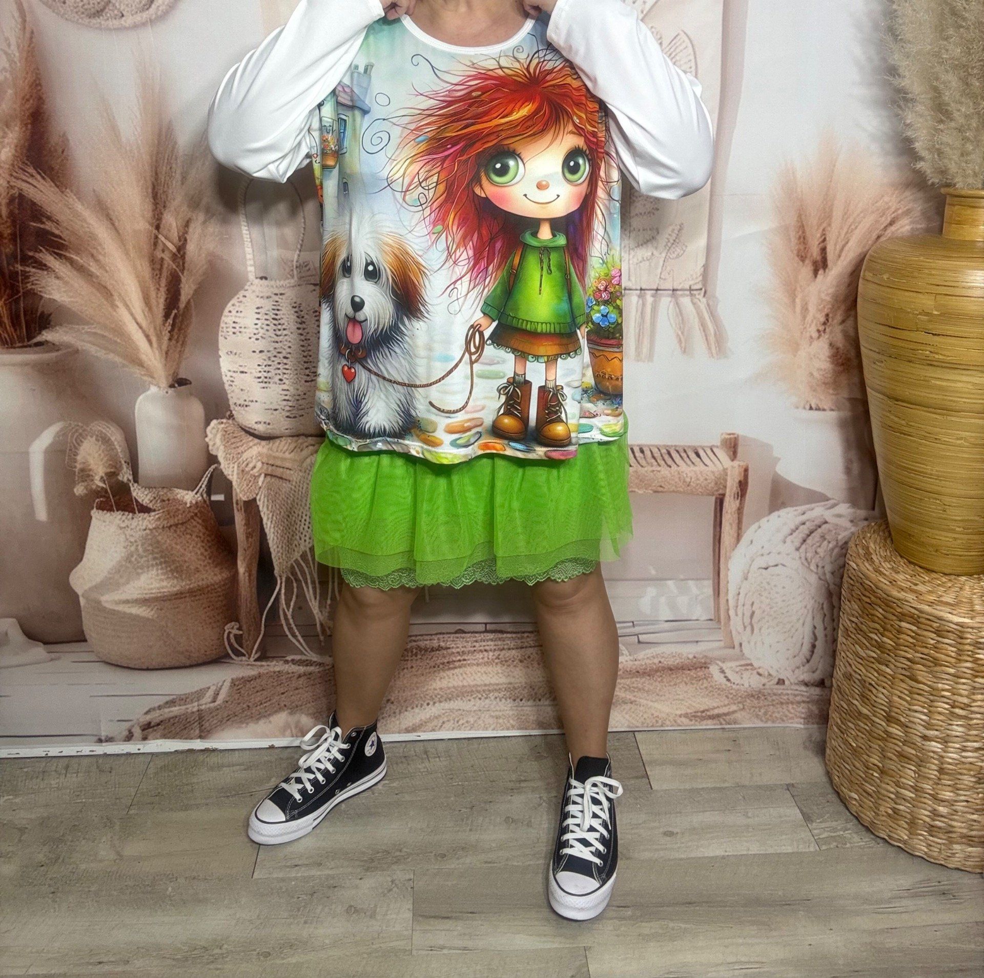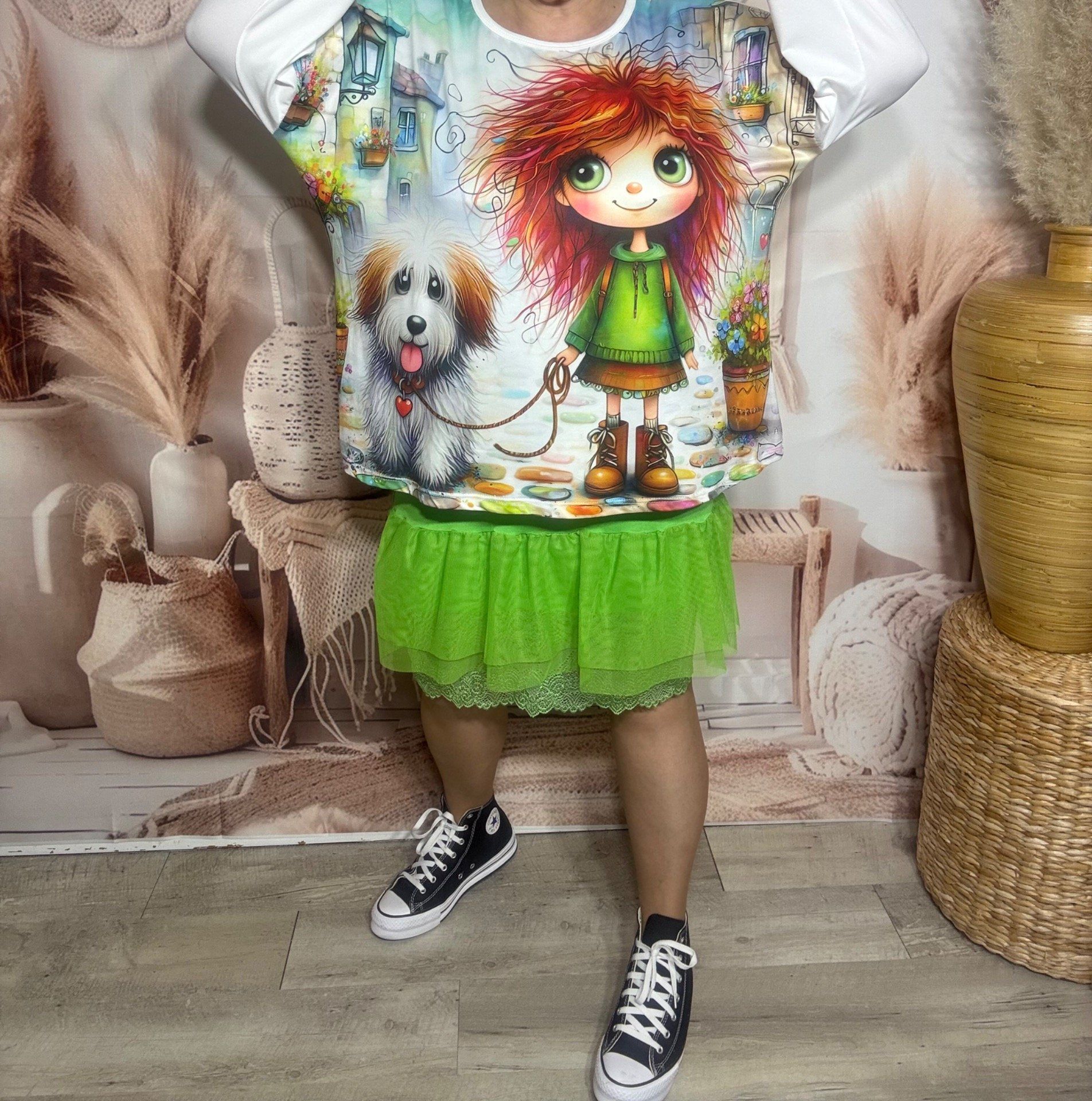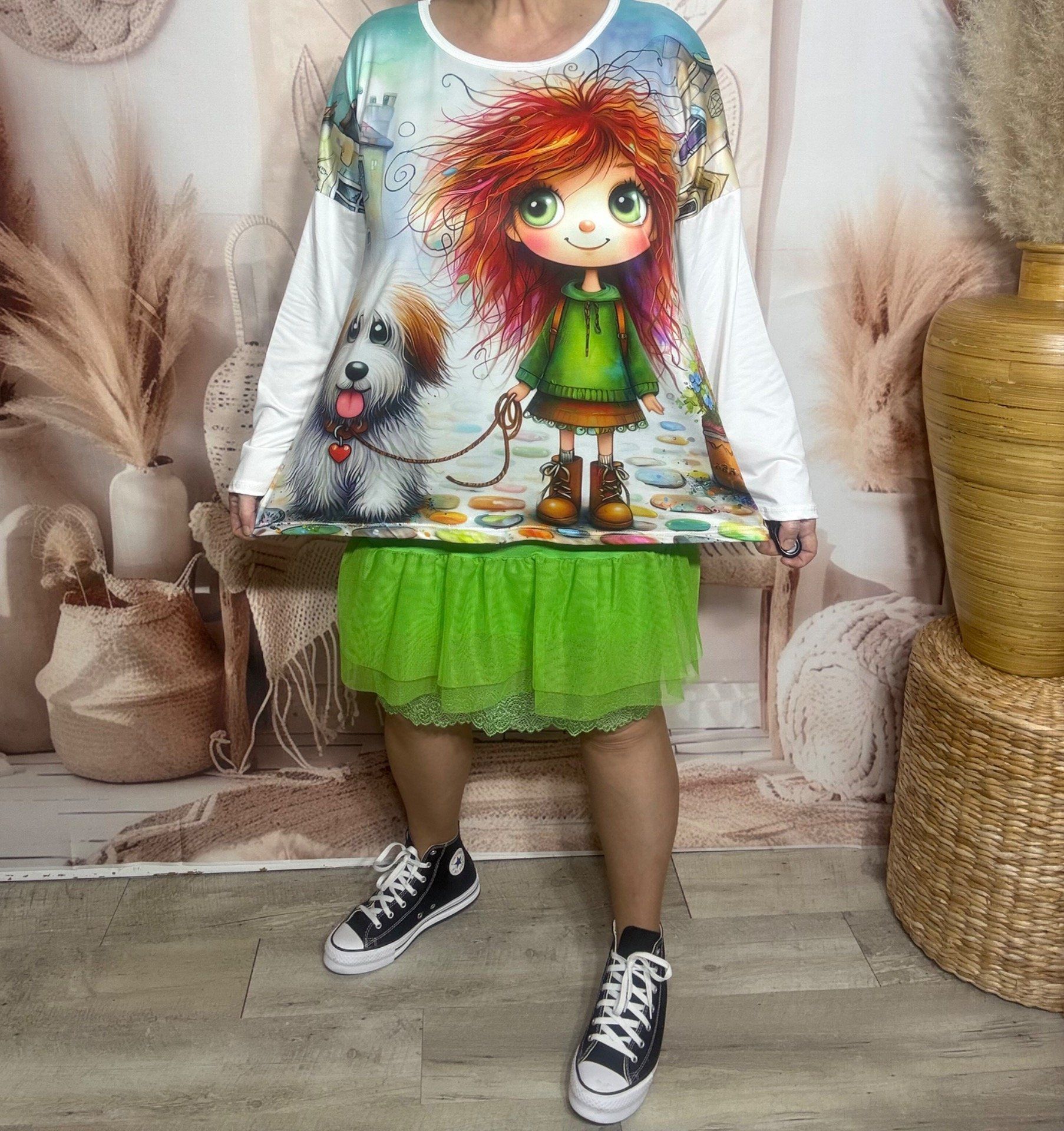 Top ample blanc manches longues La Fillette rousse et son petit chien du 40 au 52/54