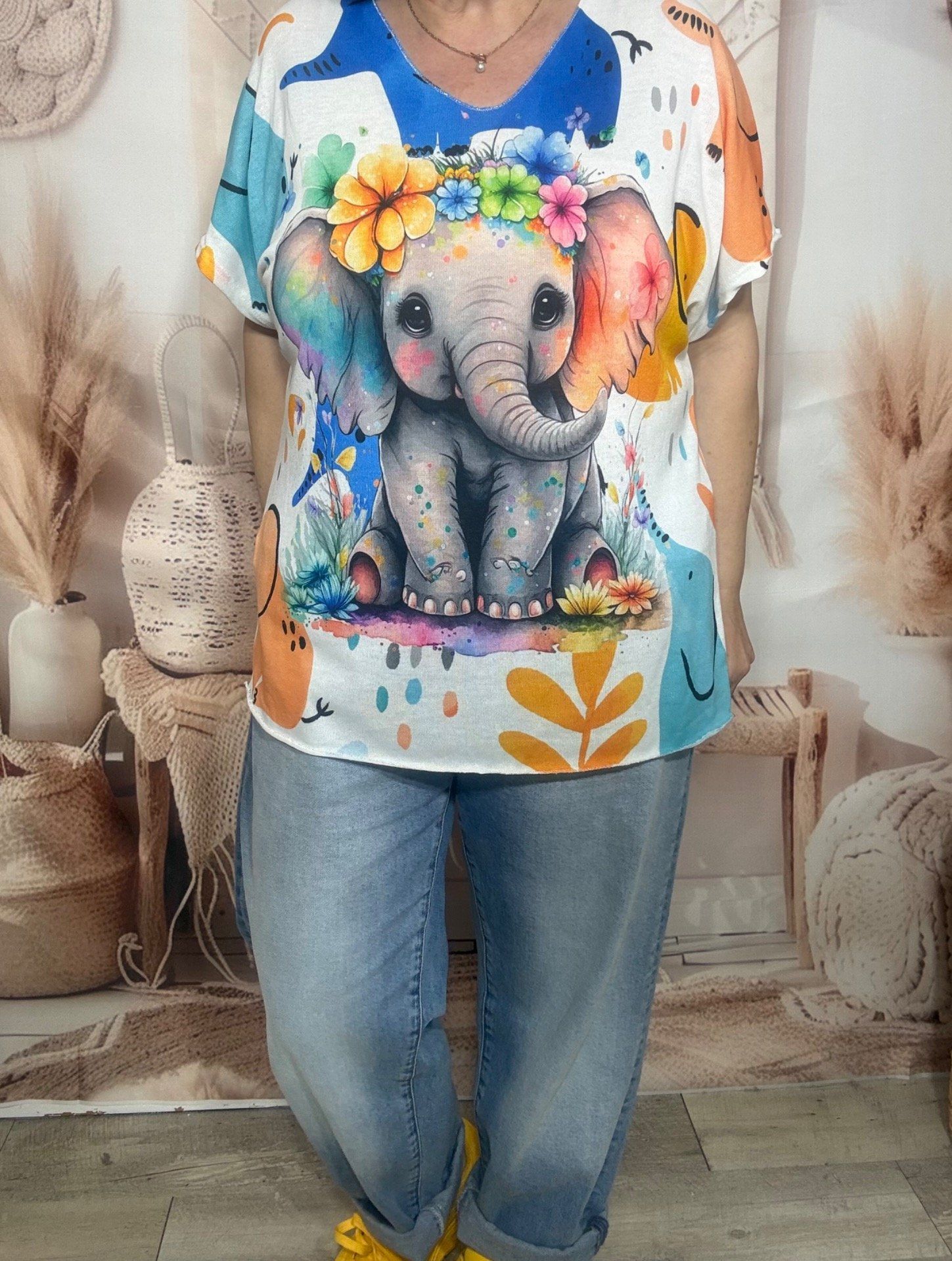 Top ample blanc Mon Adorable Petit Eléphant Lurex argenté du 40 au 48/50