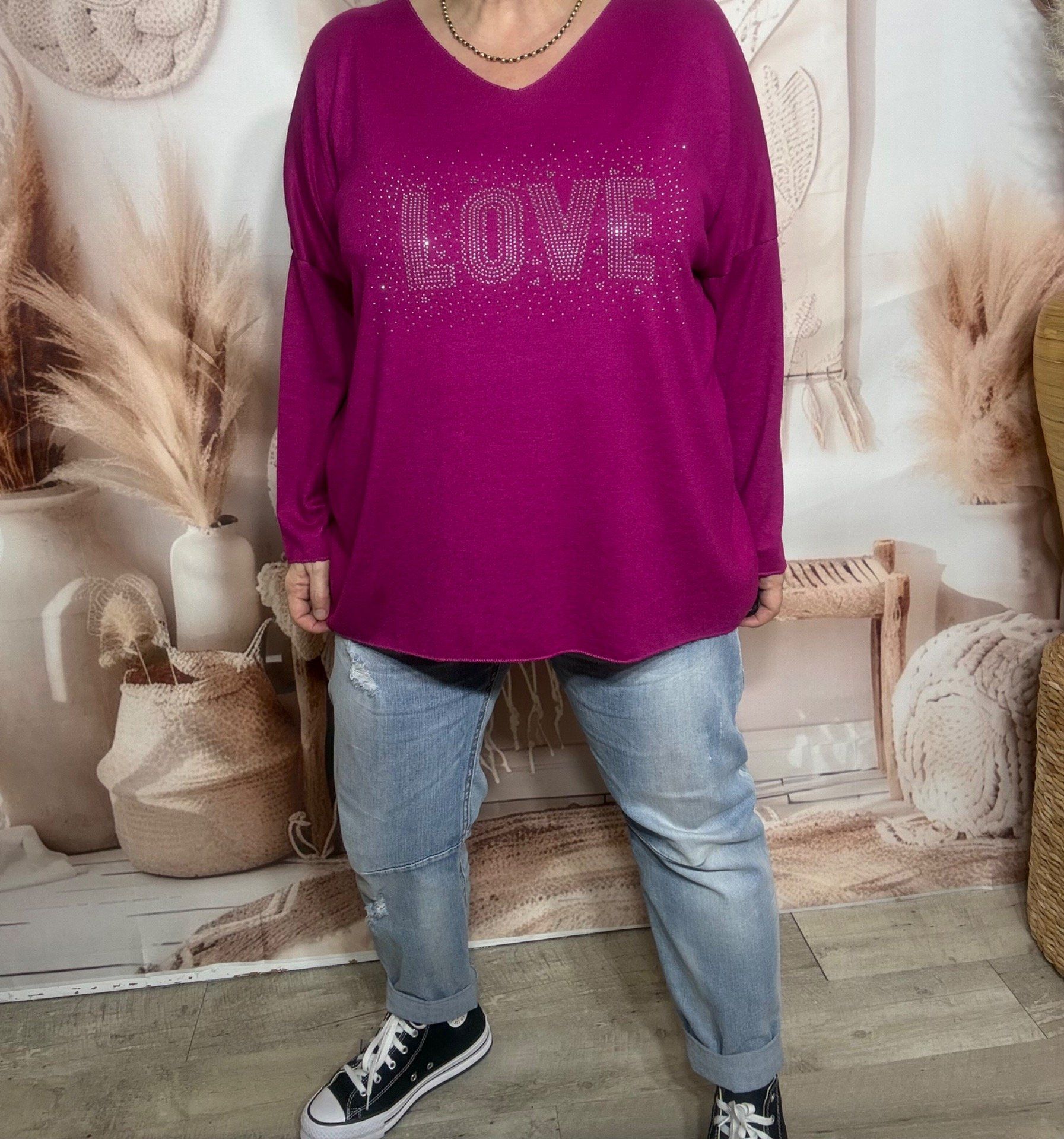 Top ample Bougainvilliers Love strass argentés douceur +++ du 40 au 52/54