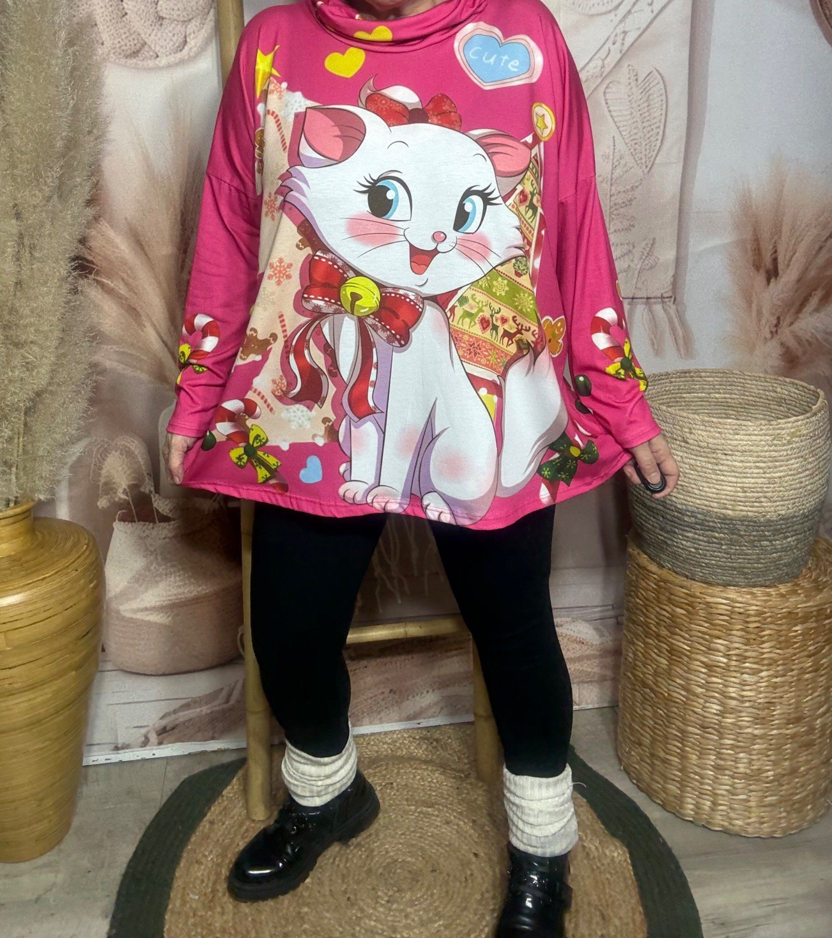 Top ample col bénitier fuschia Marie Les Aristochats Christmas Tree