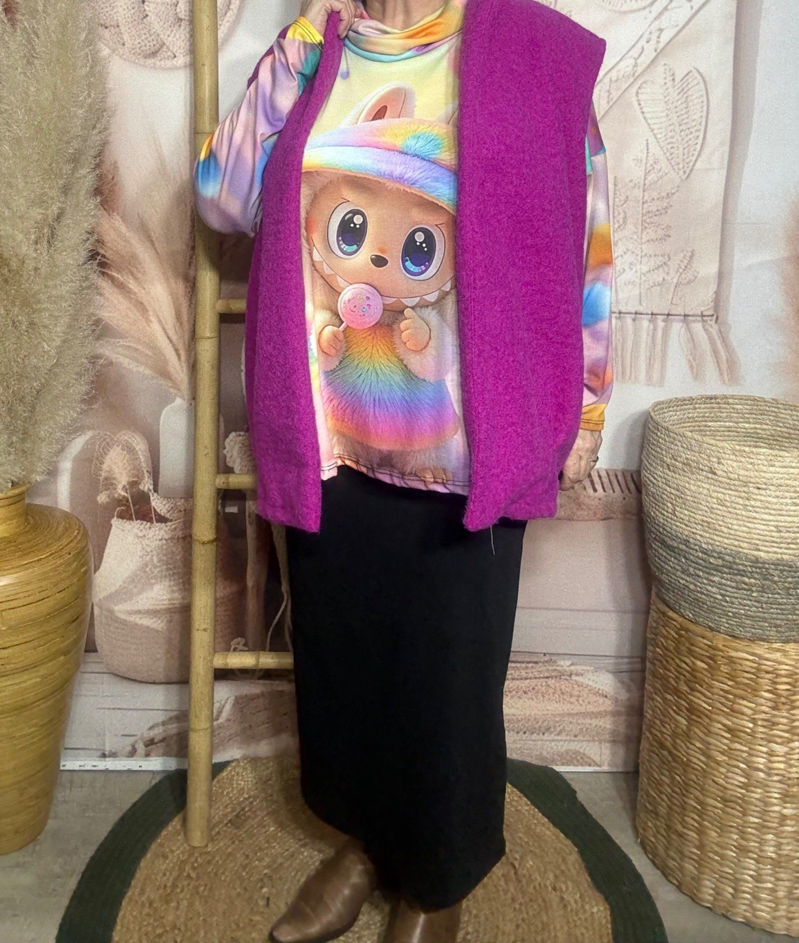 Top ample col bénitier multicolore Adorable Labubu Arc-En-Ciel du 42 au 54/56